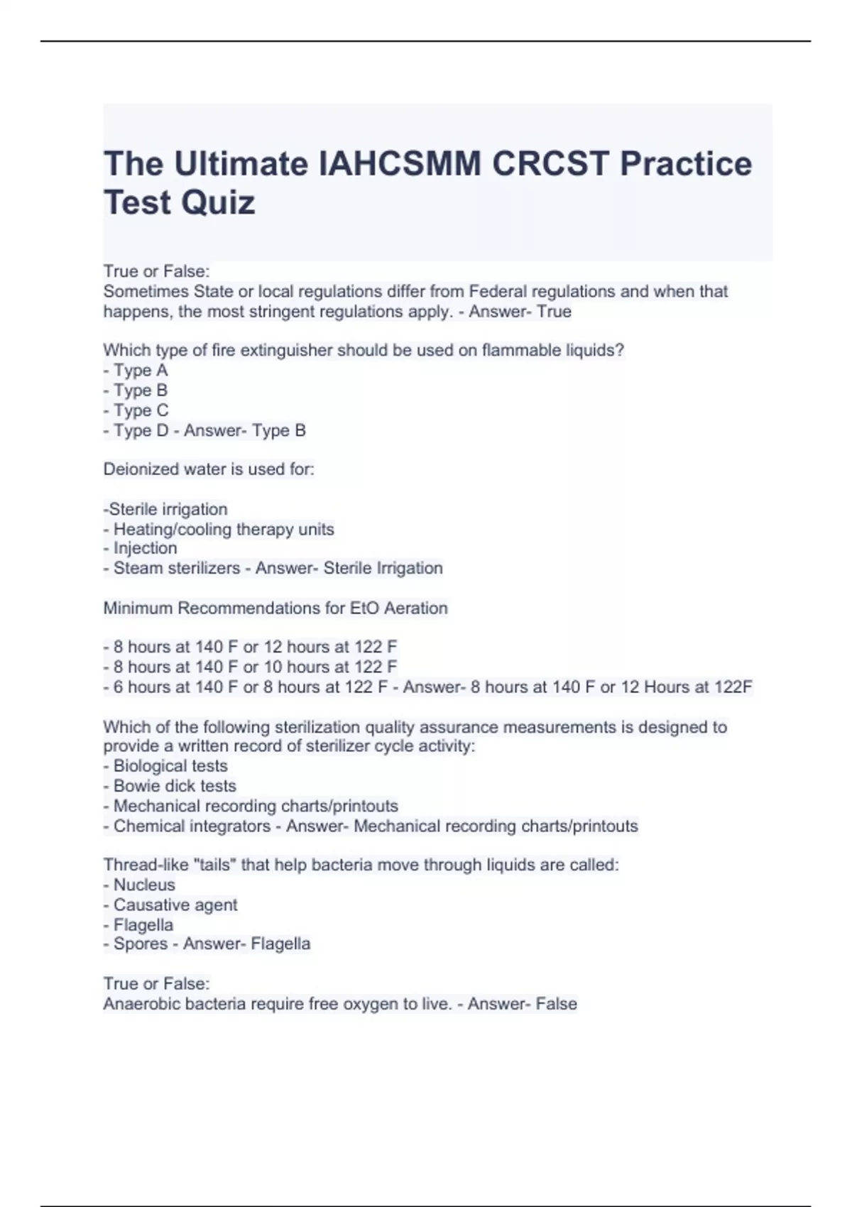 The Ultimate IAHCSMM CRCST Practice Test Quiz-solved 2 Exam (elaborations) Sterile Processing Progress Test 6 IAHCSMM CRCST Questions and Answers 3 Exam (elaborations) IAHCSMM PROGRESS TEST 1 QUESTIONS AND ANSWERS 4 Exam (elaborations) IAHCSMM PRACTICE TEST #497 questions &answers 5 Exam (elaborations) IAHCSMM Exam with correct Answers Graded A