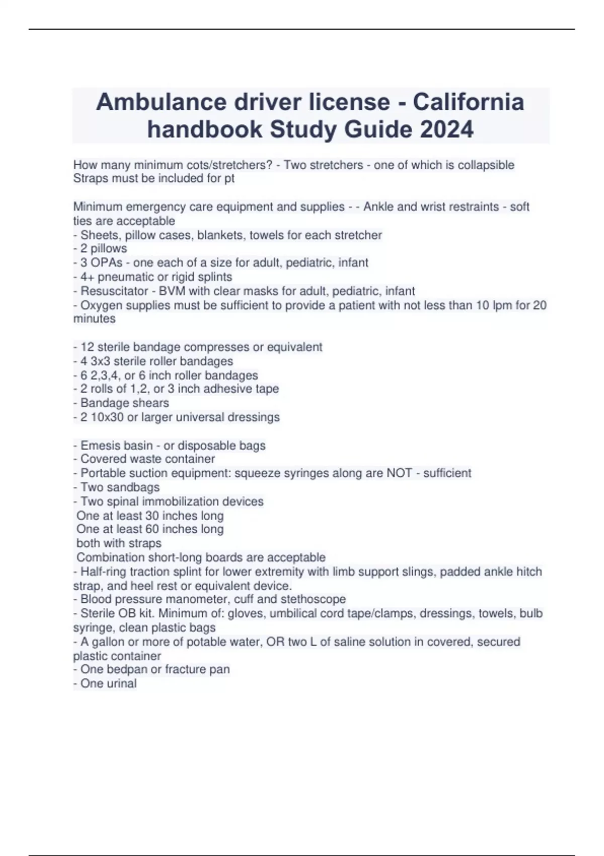 Complete Bundle For California Ambulance Driver Certification Study Guide 2024 Already Passed
