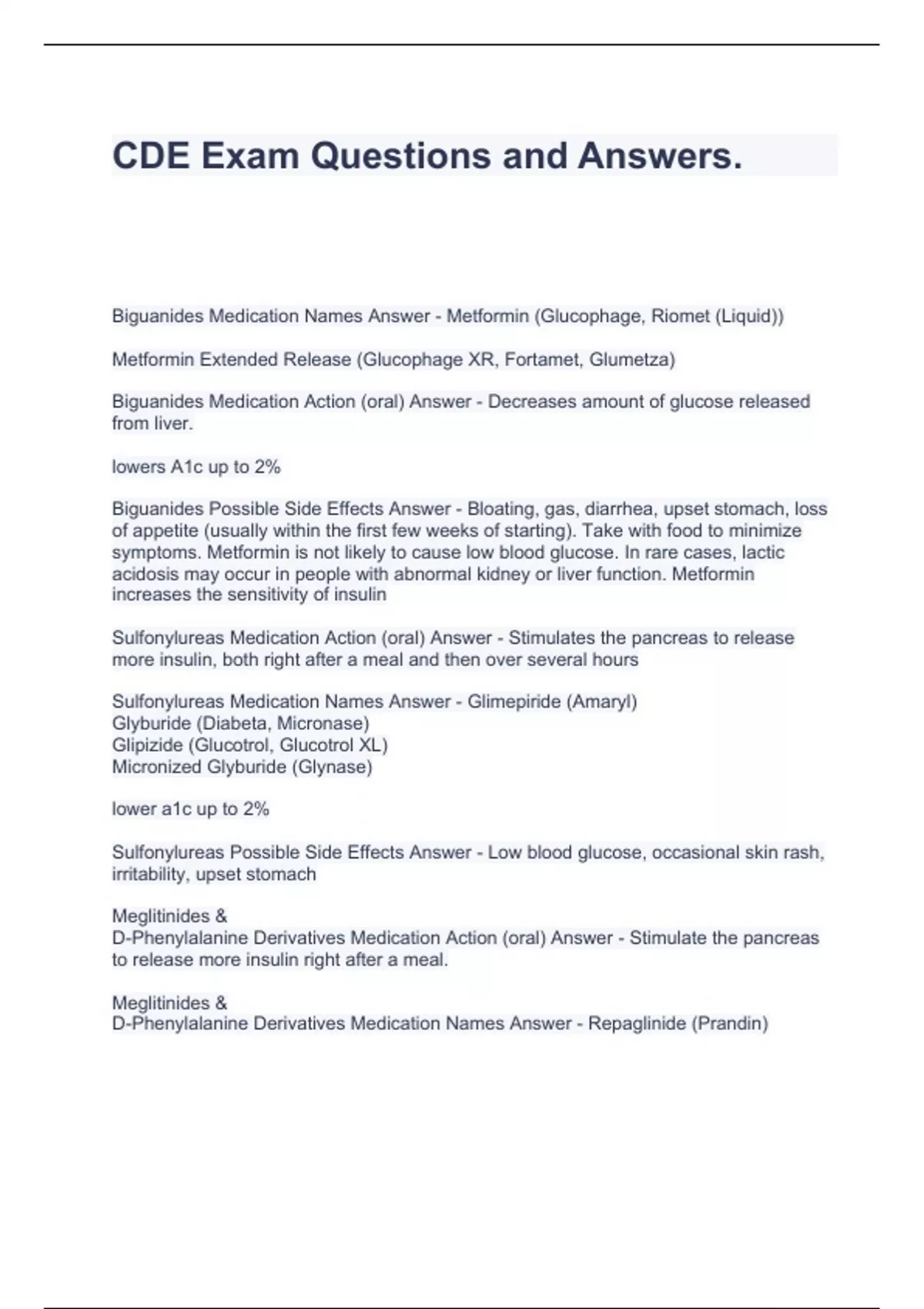 Certified Diabetes Educator Exam 1 Questions and Answers.,CDE Exam 3 Questions and Answers.,Diabetes CDE Exam Practice Questions and Answers.,CDE Exam Questions and Answers pt. 5.,CDE Practice Exam 1 Questions and Answers.,CDE Exam Study - Chapter 2 Questions and Answers.,CDE Exam Questions and Answers.,CDE 1 FINAL STUDY GUIDE QUESTIONS AND ANSWERS