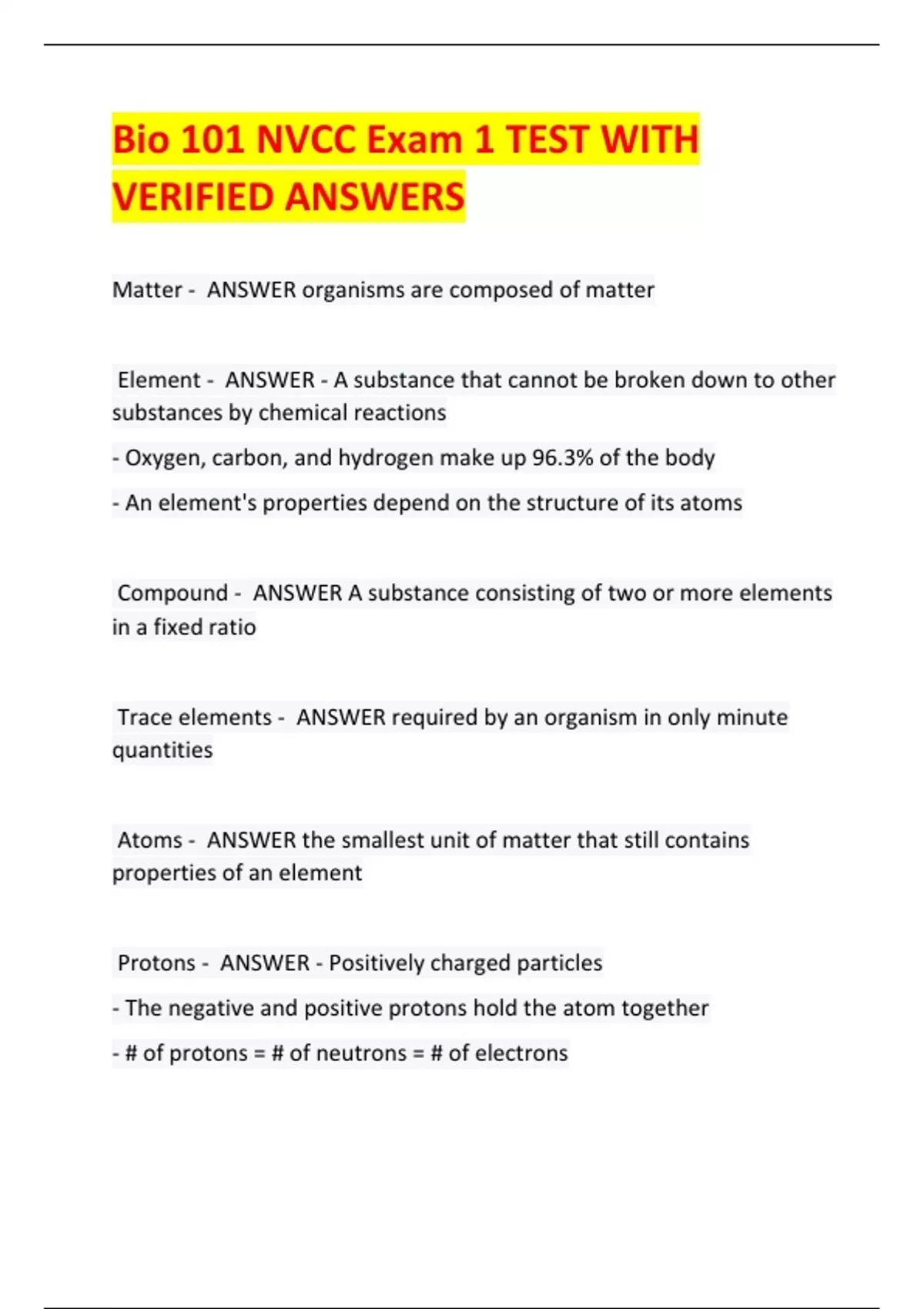 BUNDLE FOR BIO 101 nvcc final EXAM TEST QUESTIONS ANSWRED CORRECTLY & VERIFIED