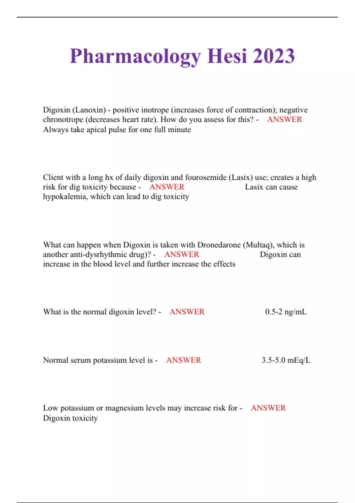 HESI Pharmacology QUESTION AND ANSWERS BANK 2023/2024