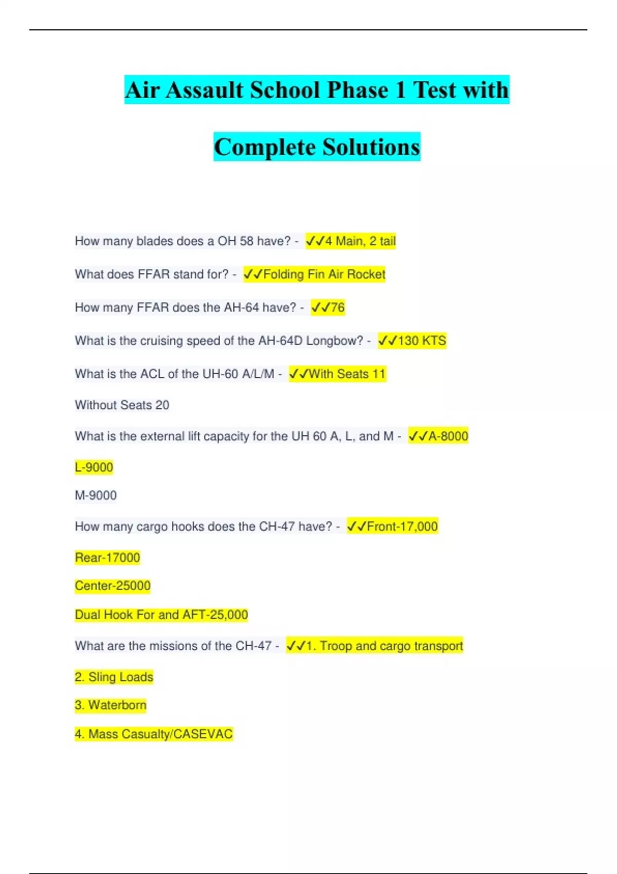 Air assault Phase 2 test FY 2024 with Complete & Verified Solutions
