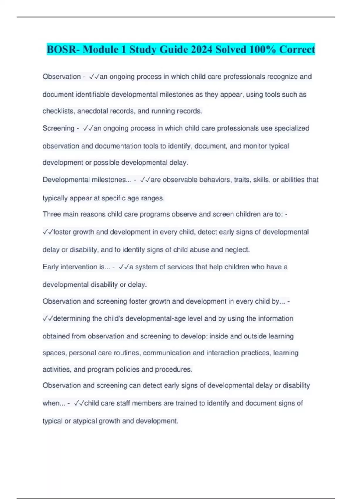 BOSR- Module 1 Study Guide 2024 Solved 100% Correct