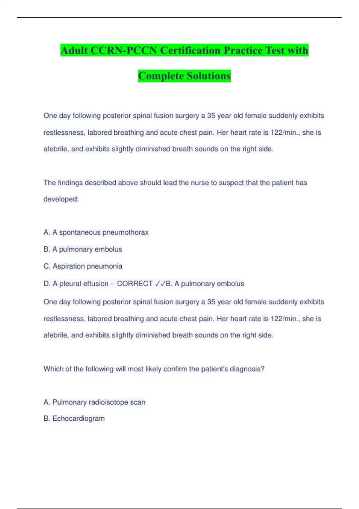 Adult CCRN-PCCN Certification Practice Test with Complete Solutions