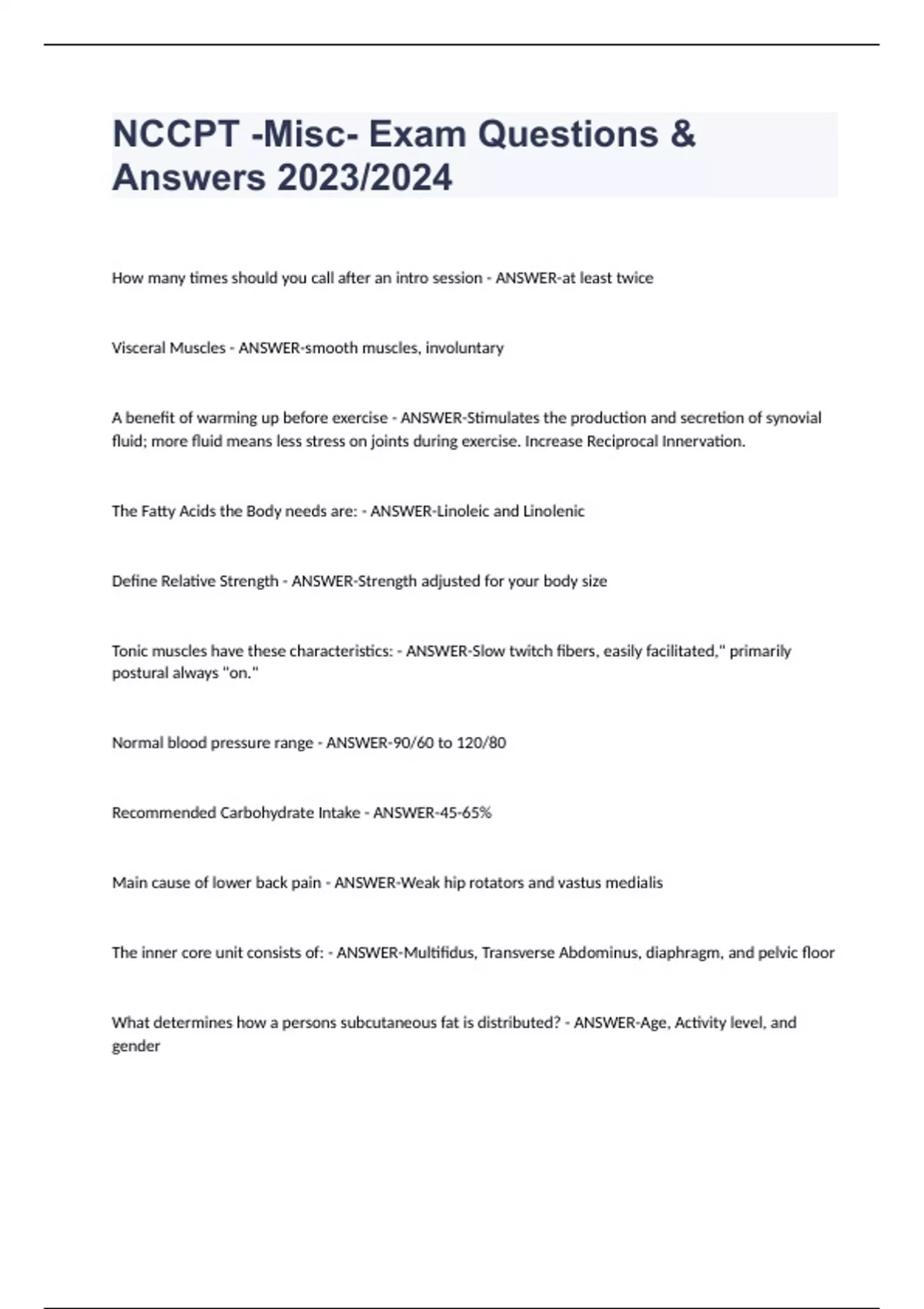 N.C.C.P.T. CERT. Exam Questions & Answers 2023/2024