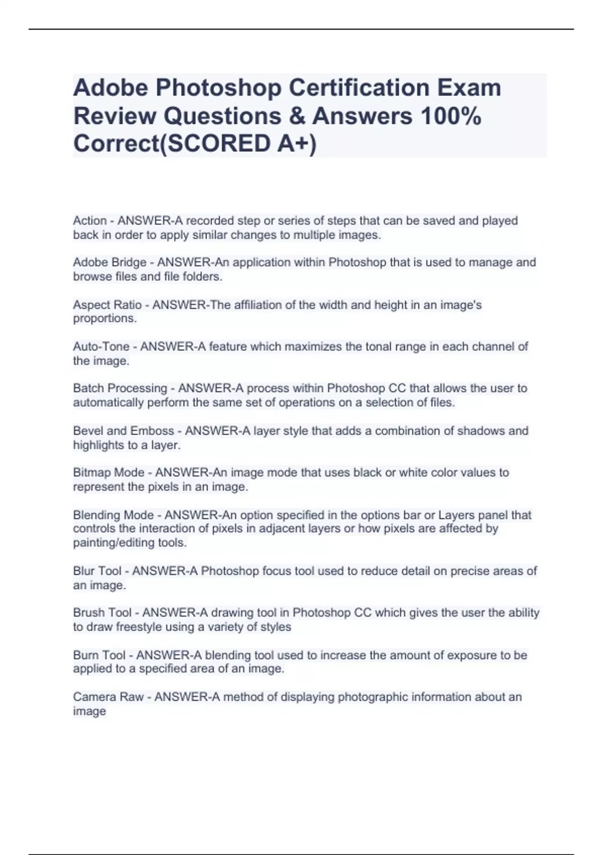 Adobe Certification Exam Questions & Answers (Already GRADED A+)Adobe Certification Exam Questions & Answers (Already GRADED A+)Adobe Certification Exam Questions & Answers (Already GRADED A+)Adobe Certification Exam Questions & Answers (Already GRADED A+)Adobe Certification Exam Questions & Answers