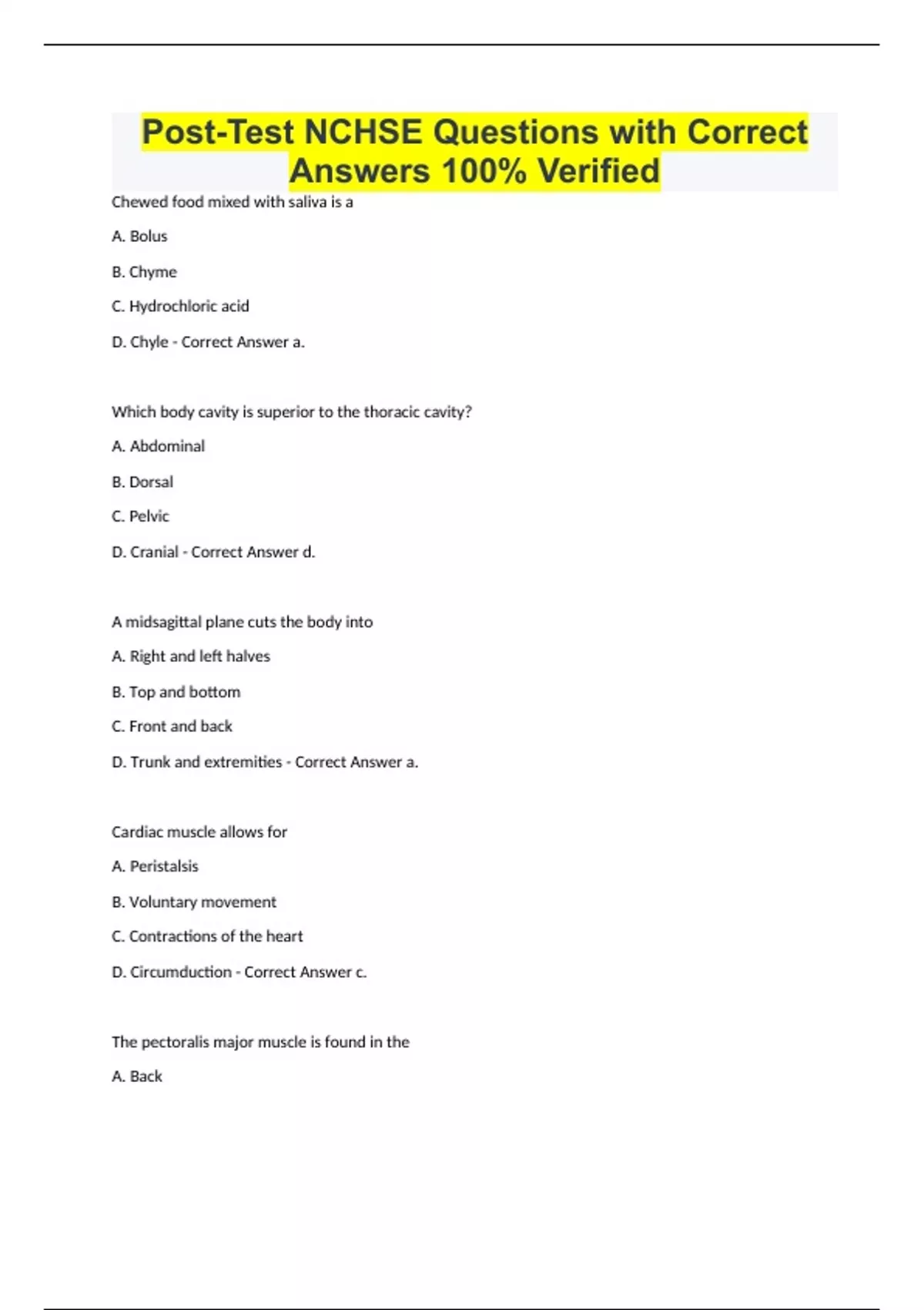 Health Science Practice Post-Test Questions with Correct Answers 2023/2024