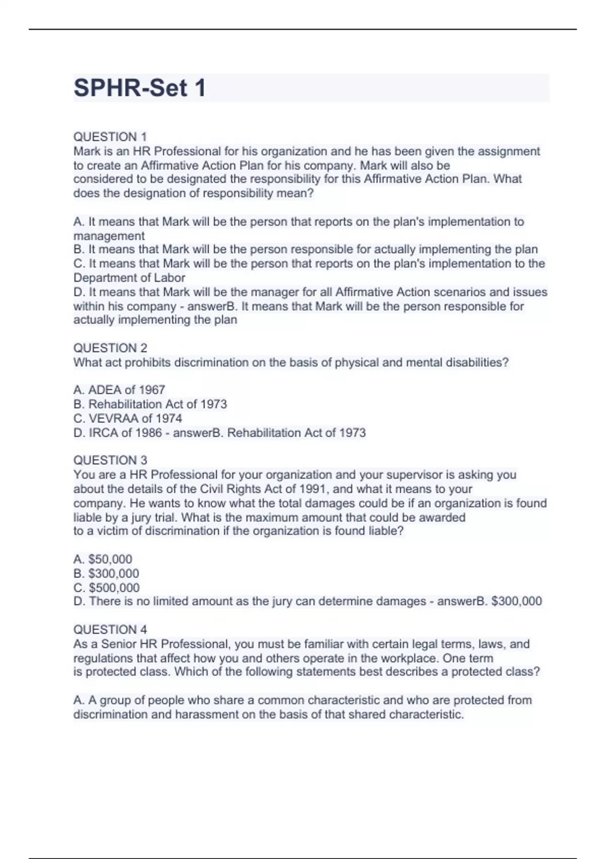 SPHR-1.EXAMS WITH QUESTIONS AND ANSWERS GRADED A+