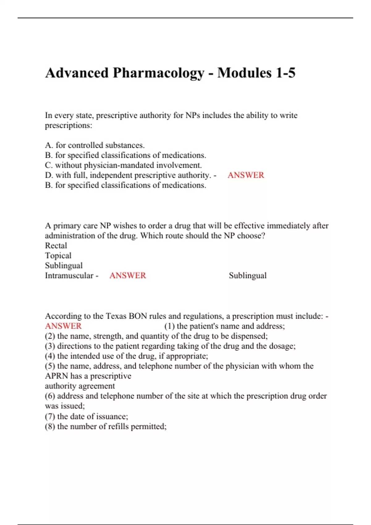Exam (elaborations) Advanced Pharmacology QUIZ Chap 1-14 2 Exam (elaborations) Advanced pharmacology for NP Exam 2 300 QUESTIONS AND ANSWERS ALL CORRECT 3 Exam (elaborations) Advanced Pharmacology Final Exam Review 4 Exam (elaborations) Advanced Pharmacology Exam 1 5 Exam (elaborations) Advanced Pharmacology - Modules 1-5