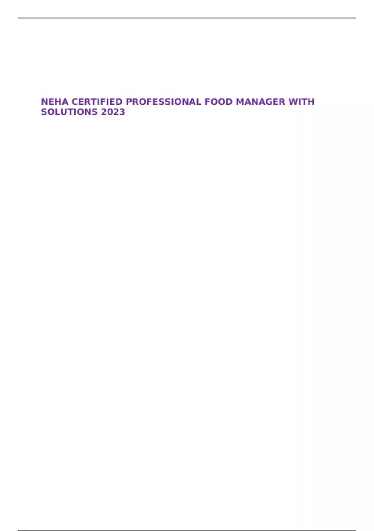 NEHA CERTIFIED PROFESSIONAL FOOD MANAGER WITH SOLUTIONS 2023