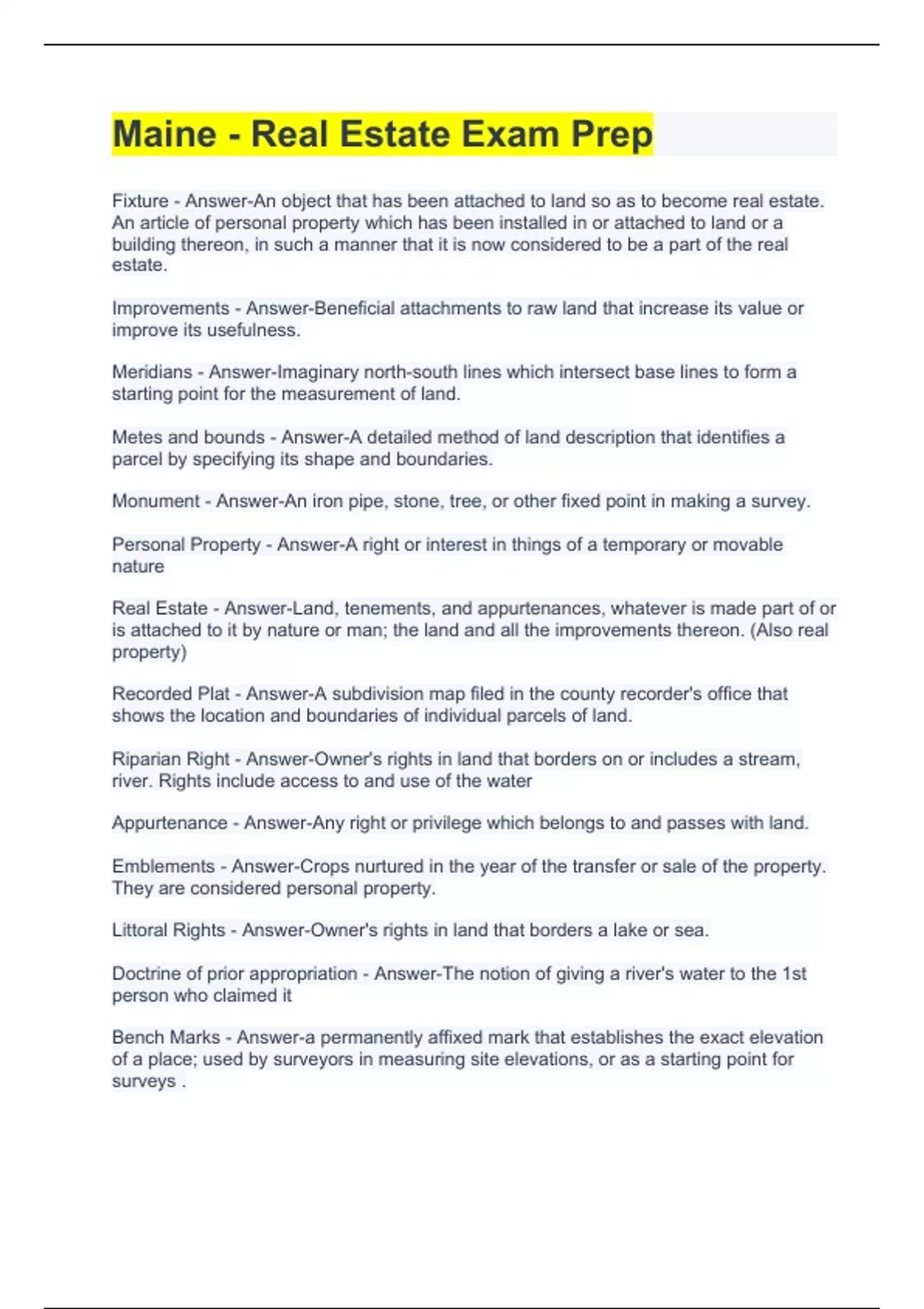 Maine Real Estate 2 Exam Bundle ( Graded A )