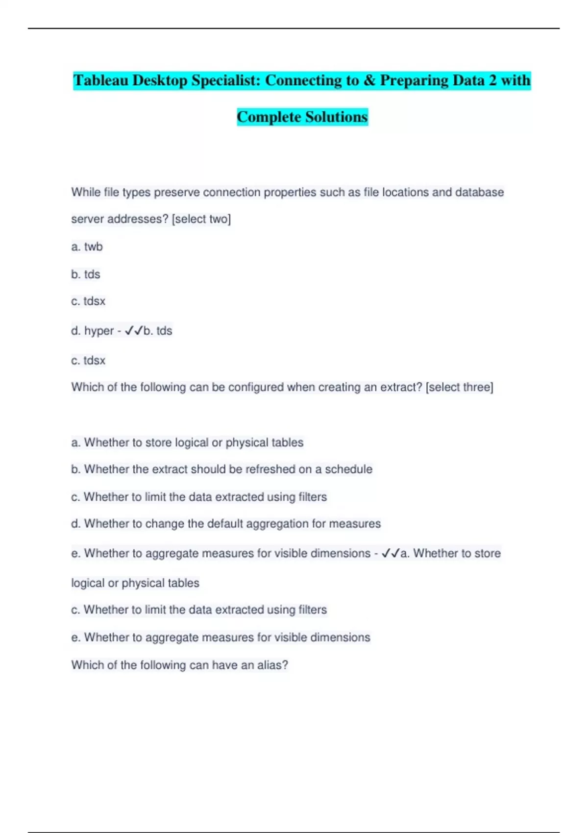 TABLEAU DESKTOP SPECIALIAST EXAM BUNDLE WITH COMPLETE SOLUTIONS ALREADY PASSED