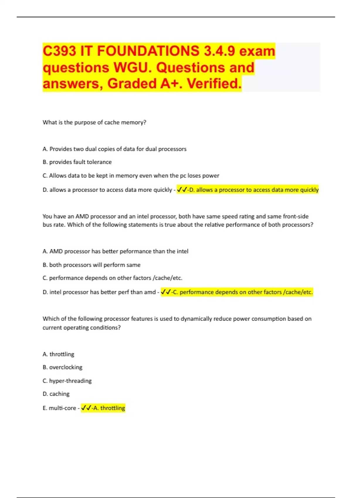 C393 IT FOUNDATIONS 3.4.9 exam questions WGU. Questions and answers, Graded A+. Verified 2024