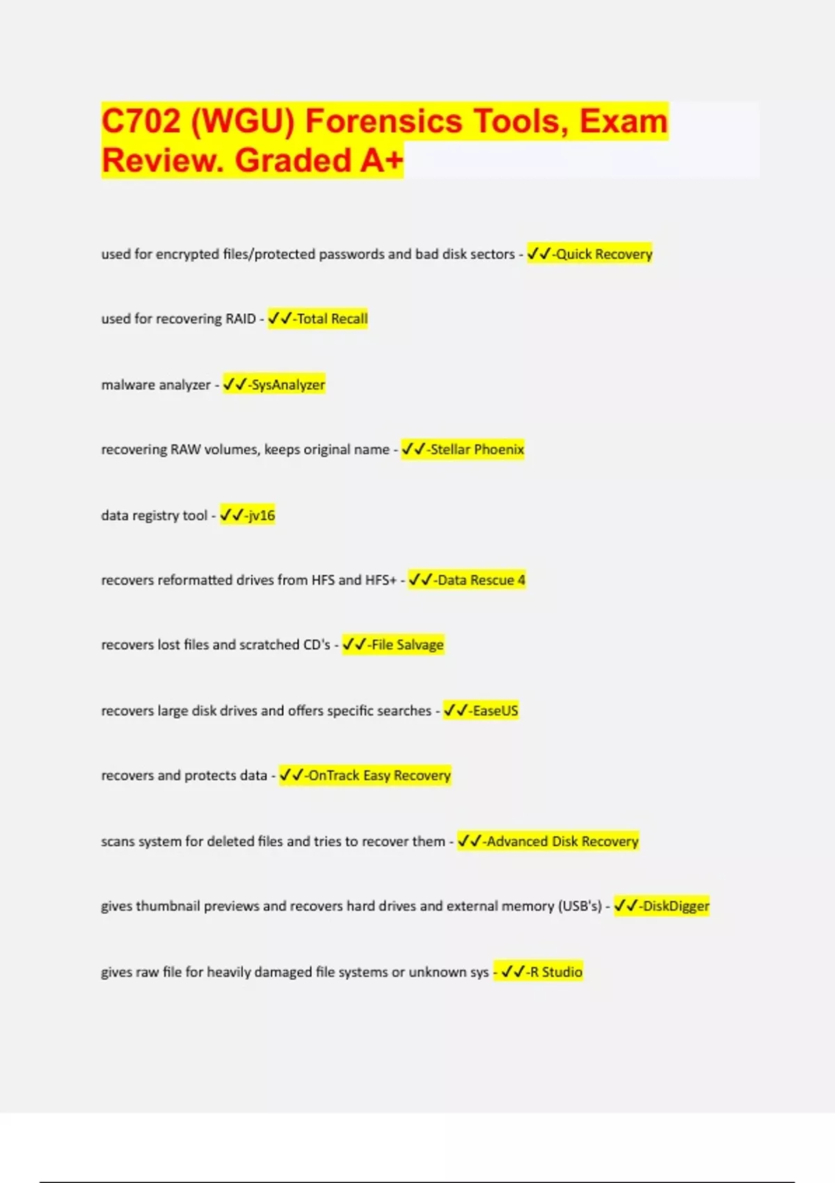 C702 (WGU) Forensics Tools, Exam Review. Graded A+ 2024