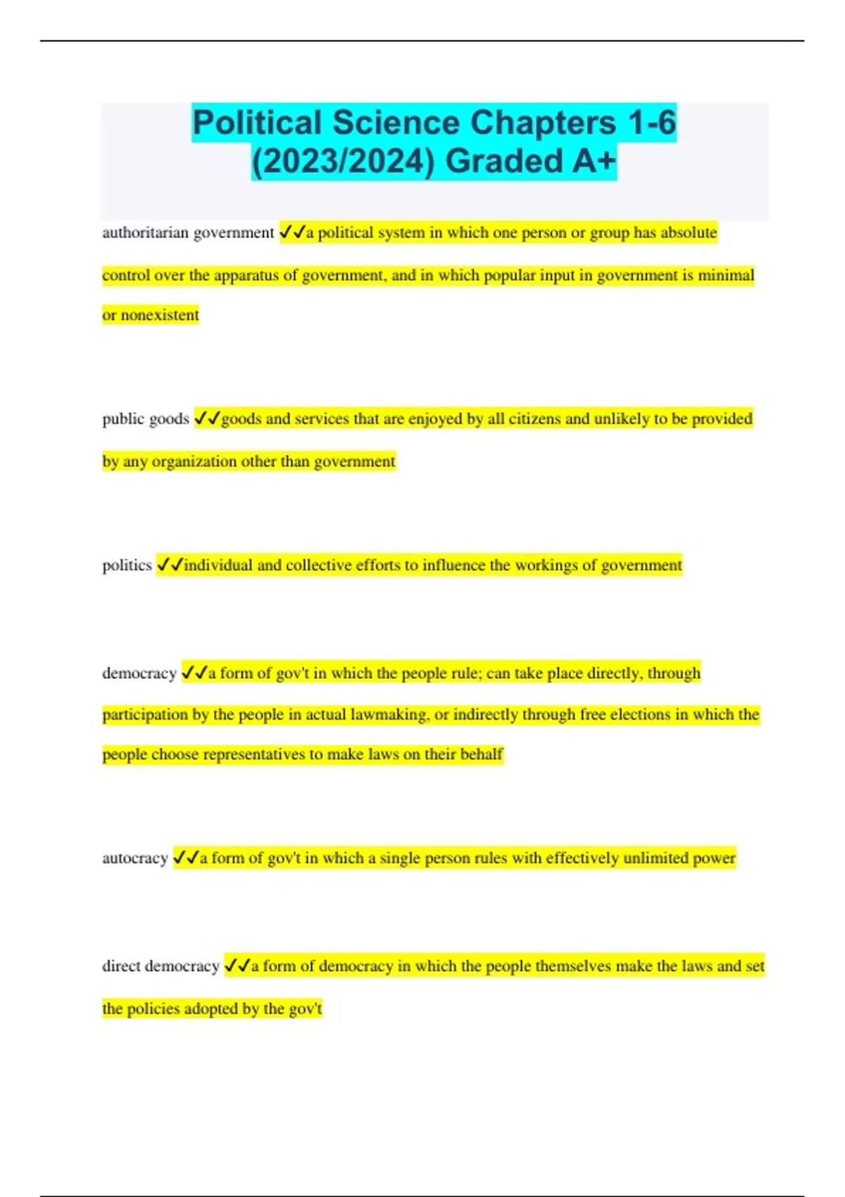 Political Science Bundled Exams Questions and Answers (2023/2024) Already Passed