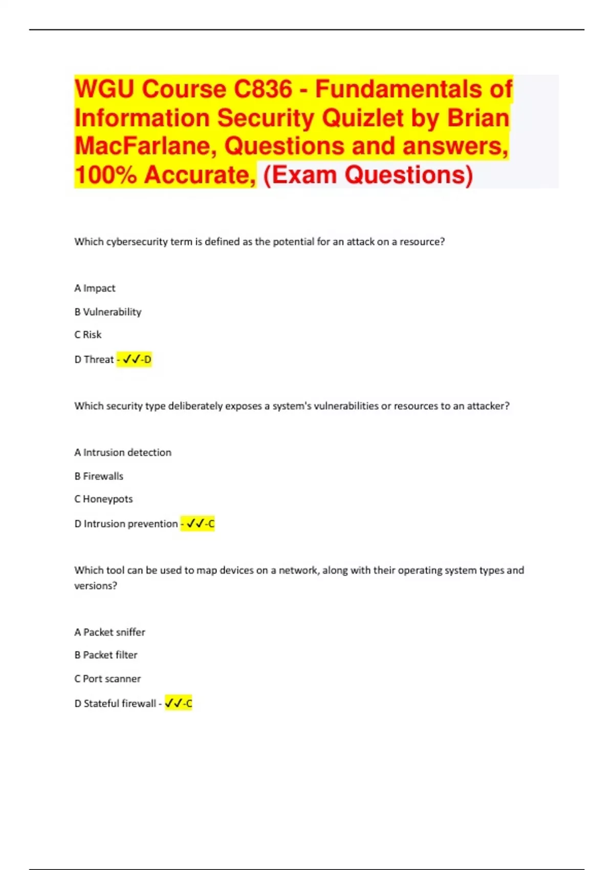 WGU C836 Bundled Exams with Complete Solution | Verified | Everything you Need!!