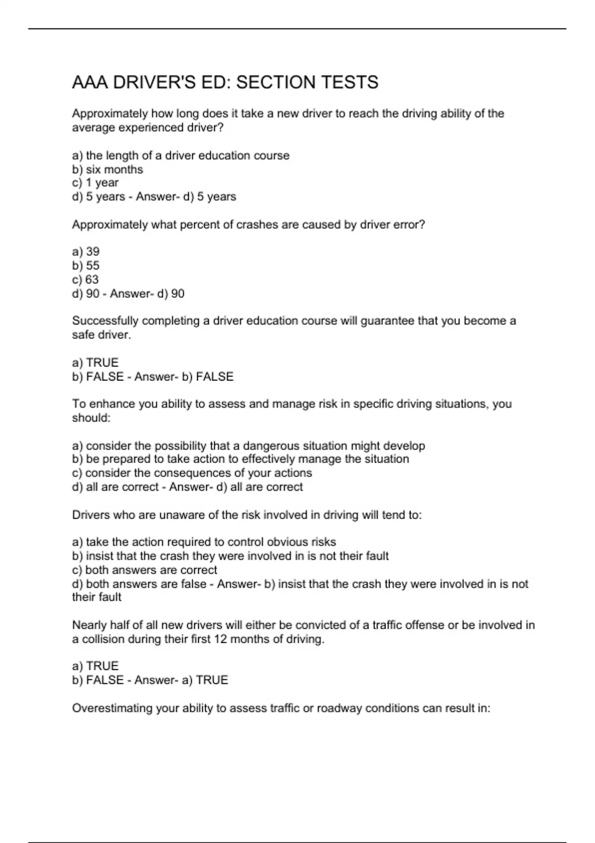 AAA Driver s ED: Section Tests/AAA Driver s ED Q s: Sample Test #1/AAA Driver s ED: FINAL EXAM/Triple AAA Drivers Education Section Quiz Answers/AAA Drivers Ed Q&A 2023/aaa driving test/AAA drivers final exam