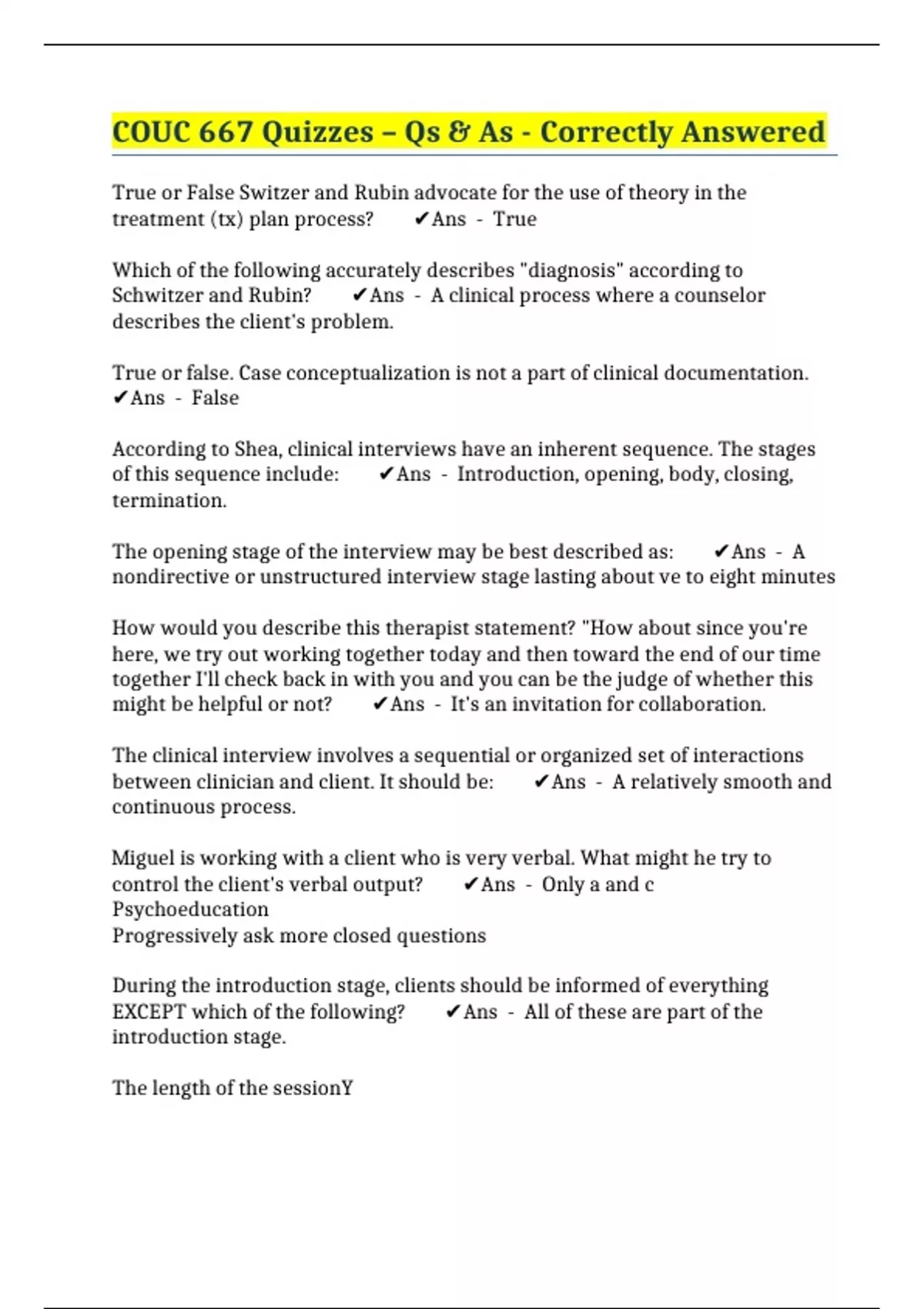 BUNDLE::: COUC 667 QUIZZES (LATEST UPDATE)