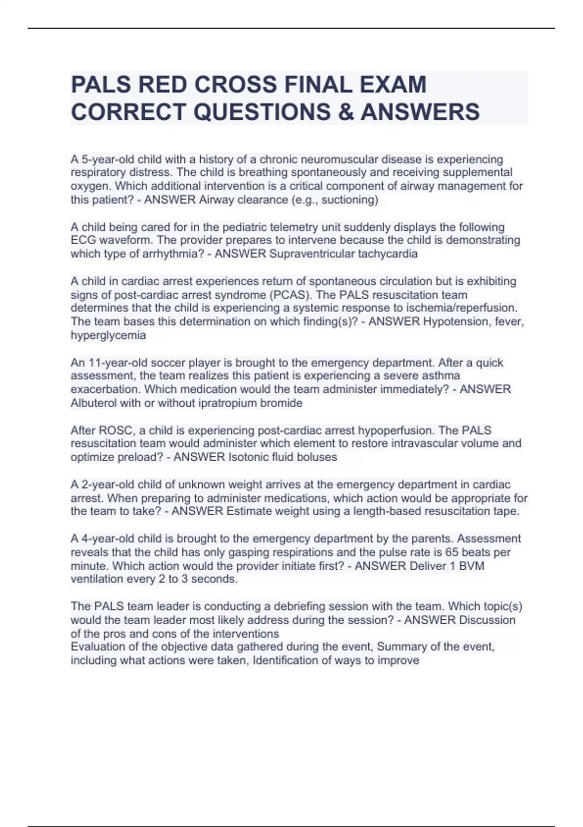 PALS RED CROSS FINAL EXAM CORRECT QUESTIONS & ANSWERS EXAM BUNDLEVPALS RED CROSS FINAL EXAM CORRECT QUESTIONS & ANSWERS EXAM BUNDLEPALS RED CROSS FINAL EXAM CORRECT QUESTIONS & ANSWERS EXAM BUNDLEPALS RED CROSS FINAL EXAM CORRECT QUESTIONS & ANSWERS EXAM BUNDLE