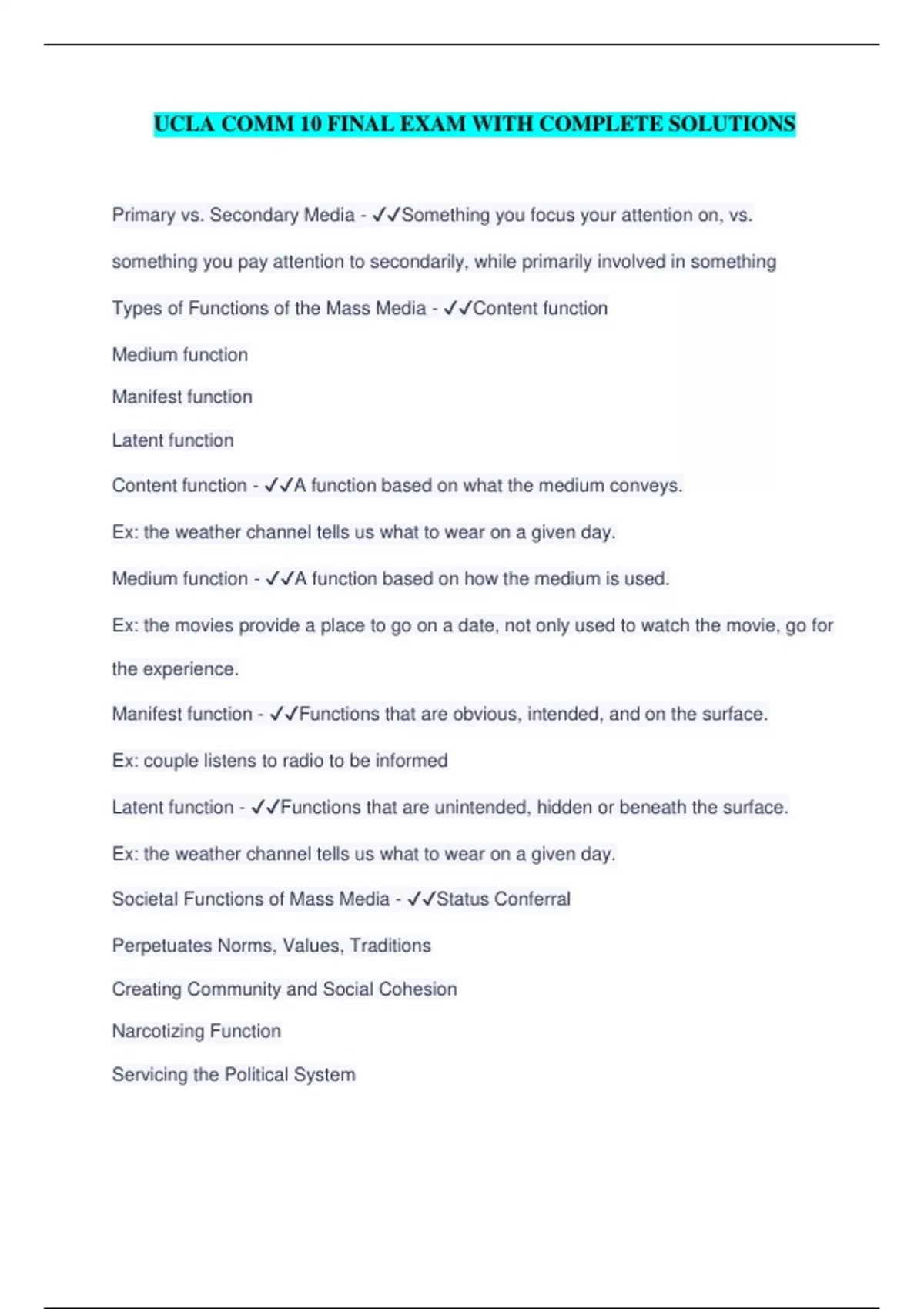 UCLA COMM 10 EXAM BUNDLE PACK WITH COMPLETE SOLUTIONS ALREADY PASSED