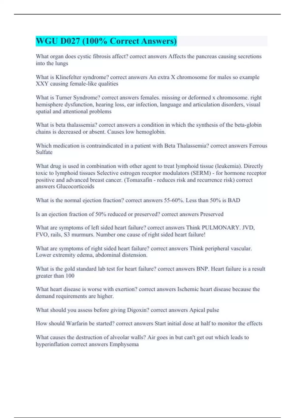WGU D027 (100% Correct Answers) D027 review Q&A’s (A+ Guaranteed) 2024. WGU D027 PathoPharm (100% Error-free Answers) D027 Practice Test #2 D027 Pathopharm (with Accurate Answers) WGU D027 Course Material 2024 Questions with Accurate Answers 100%. D027 WGU 2024 (with Complete Solutions) 2024 WGU D027 Study Guide (A+ Graded Already) WGU D027 Course