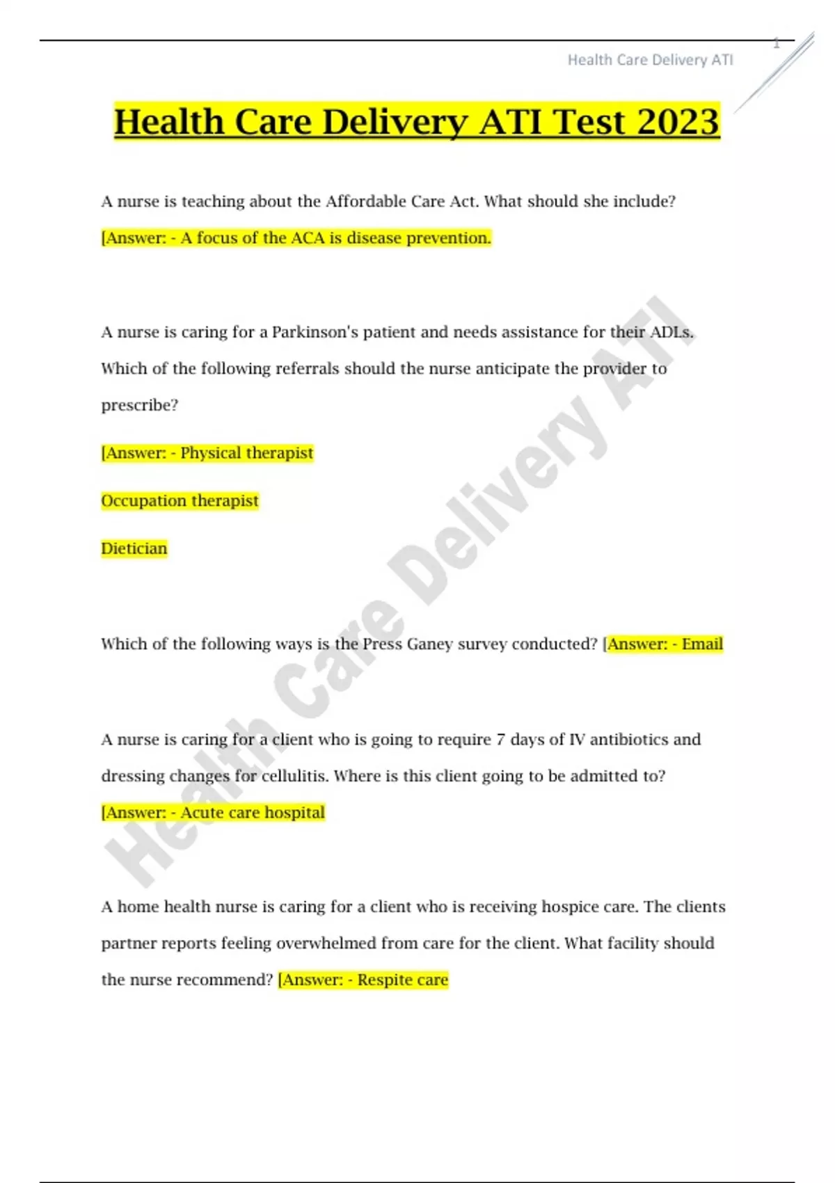 (Complete) Health Care Delivery ATI Tests |ATI Health Care Delivery Test | All Questions With Verified Answers 2023/2024,(Complete) Health Care Delivery ATI Tests |ATI Health Care Delivery Test | All Questions With Verified Answers 2023/2024