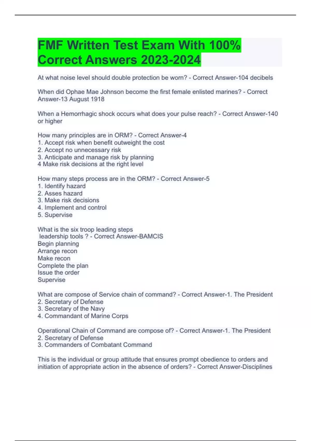 FMF Core Exam Questions With 100% Correct Answers FMF CORE 101-104 // BOARD QUESTIONS WITH 100% CORRECT ANSWERS FMF Core Exam With 100% Correct Answers FMF Oral Board Exam Questions With 100% Correct Answers FMF PRE-TEST LCE STUDY GUIDE WITH COMPLETE SOLUTIONS FMF GCE TEST EXAM WITH 100% CORRECT ANSWERS 2023