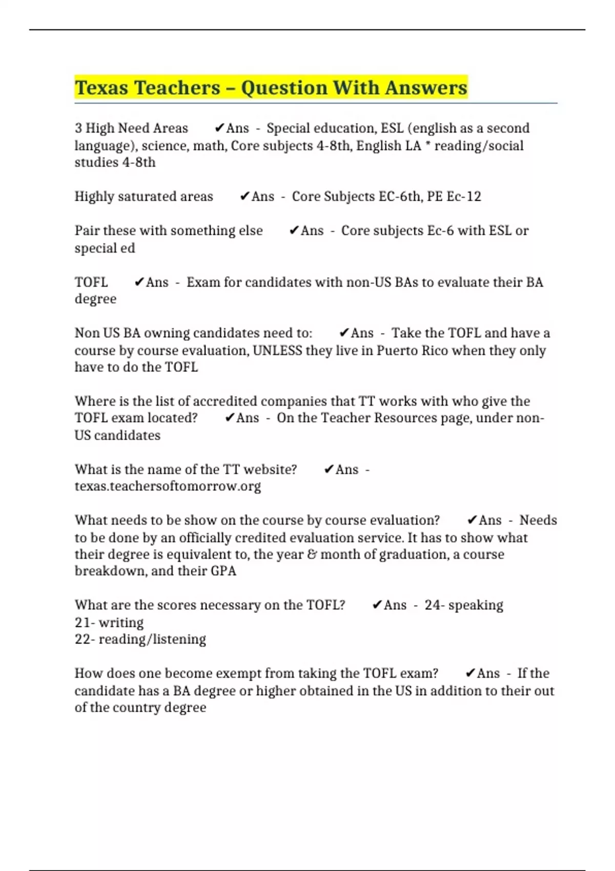 Texas Teachers – Question With Answers