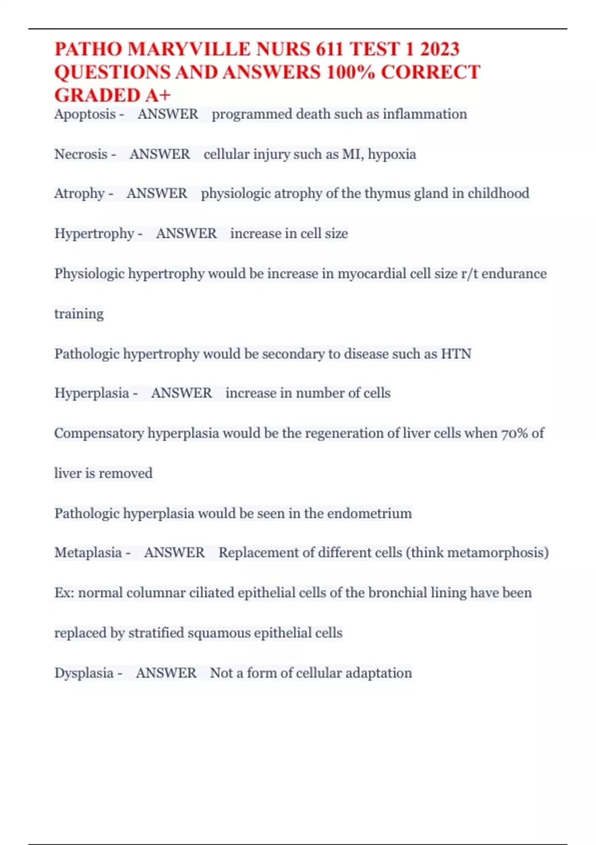 NURS 611 Advanced Pathophysiology (NURS611) EXAM REVIEW/Maryville University Nursing 615 Exam 3 Review/Maryville NURS615 Pharm 2 exam/Maryville University NURS615 Pharmacology Exam 4 2023/NURS 615 PHARM EXAM 1 - MARYVILLE 2023/NURS 615 EXAM IV - MARYVILLE 2023/ PATHO MARYVILLE NURS 611 TEST 1 2023 QUESTIONS AND ANSWERS 100% CORRECT GRADED A+