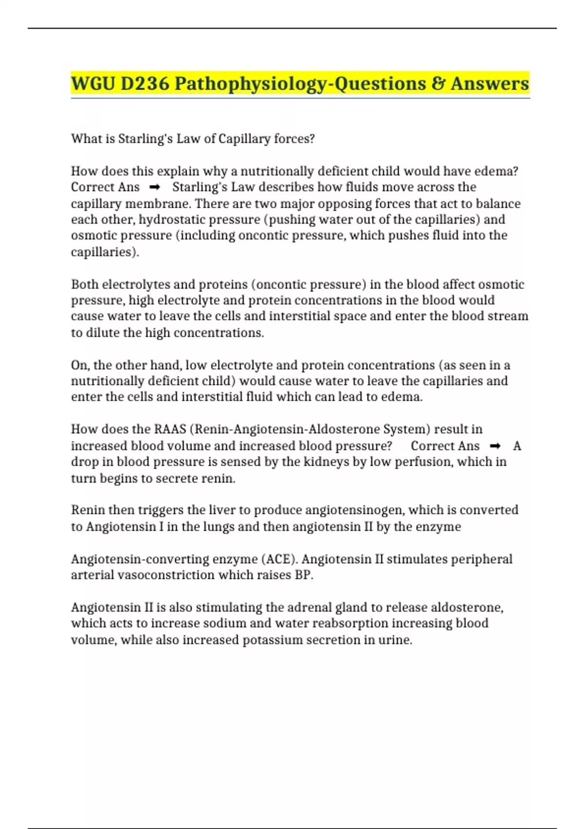BUNDLE::: WGU D236 EXAMS - PATHOPHYSIOLOGY (LATEST UPDATE)