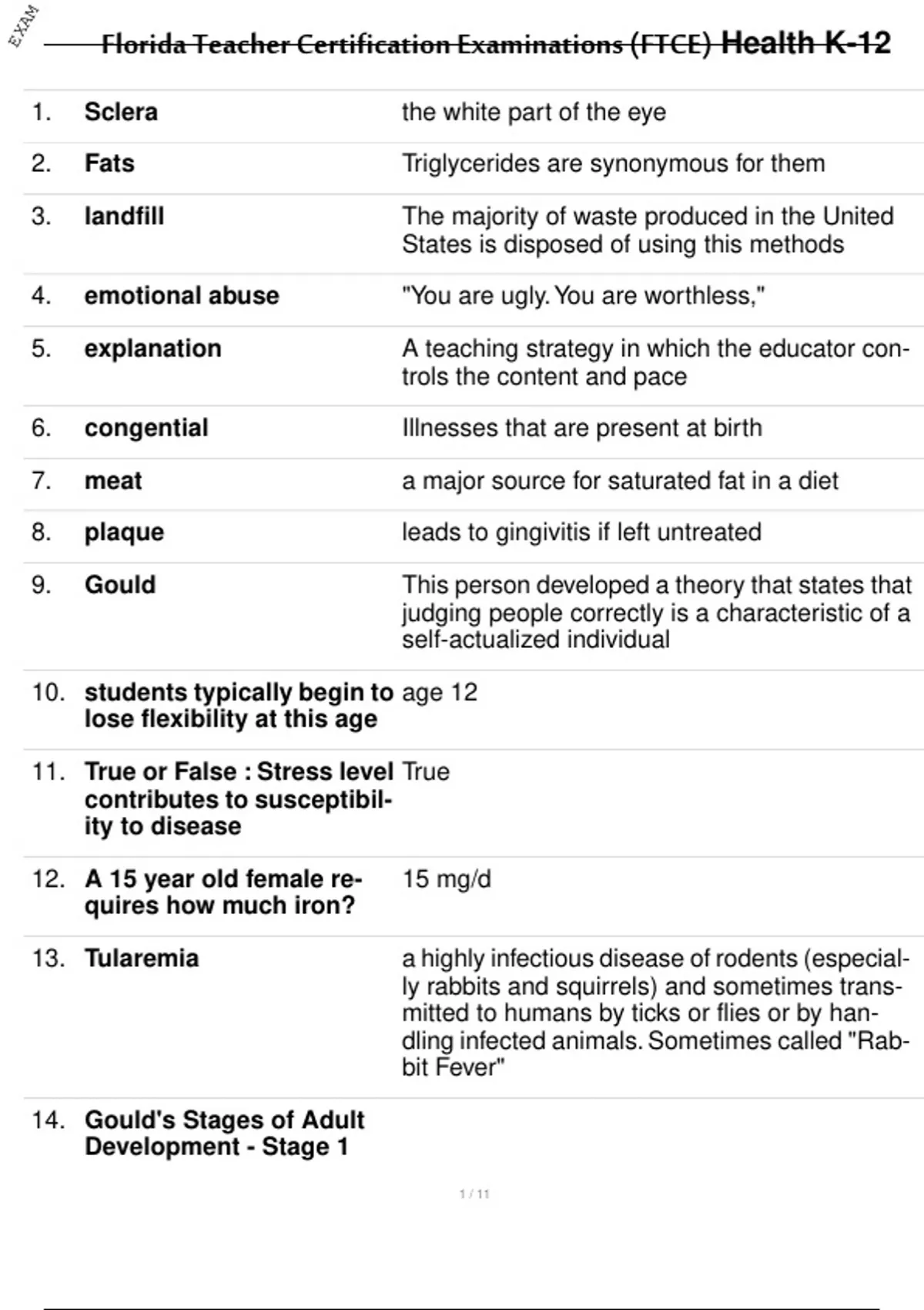 Florida Teacher Certification Examinations (FTCE) Health K-12: Practice Test