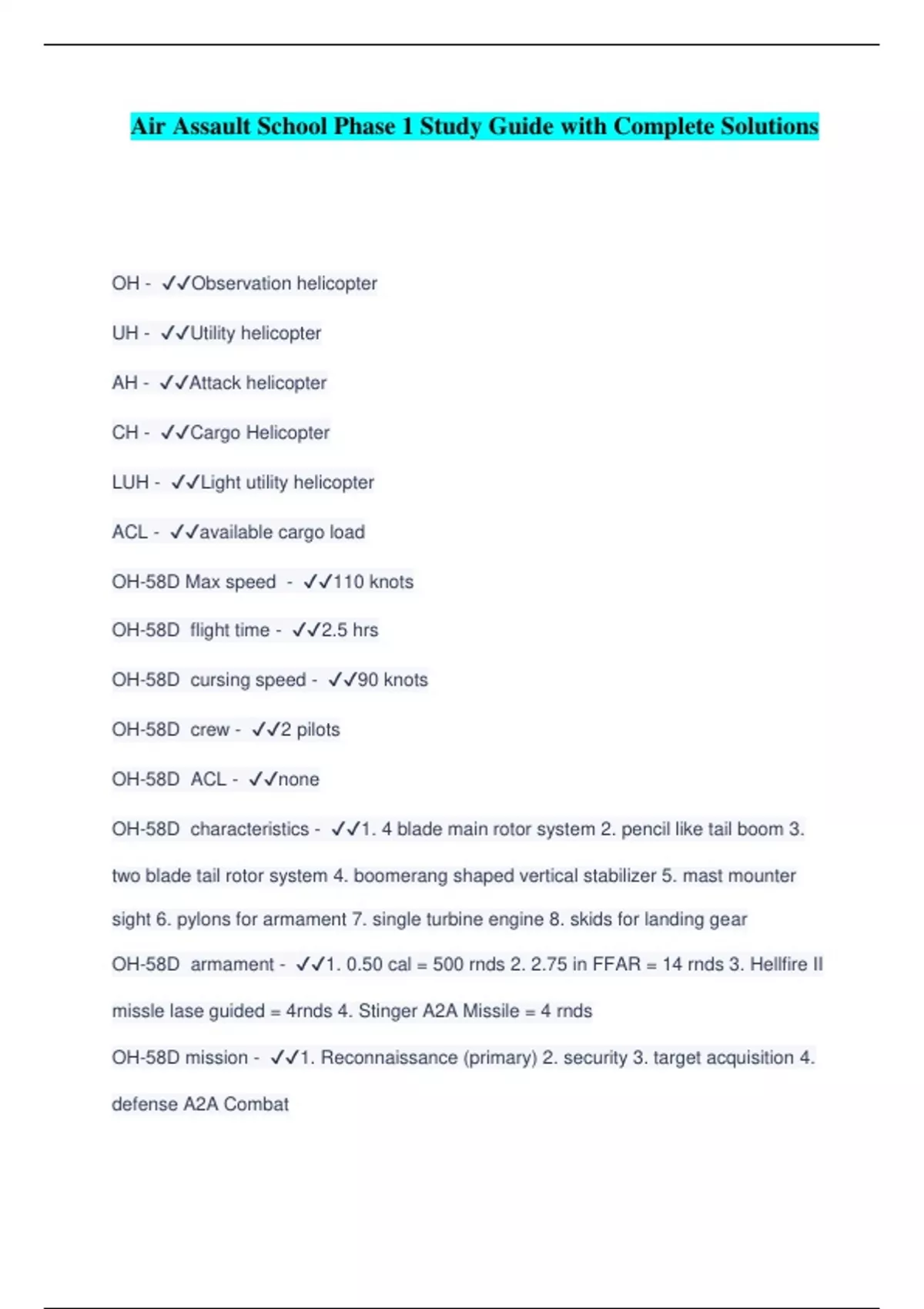 Air Assault Phase 1 Homework Study Guide with complete solutions
