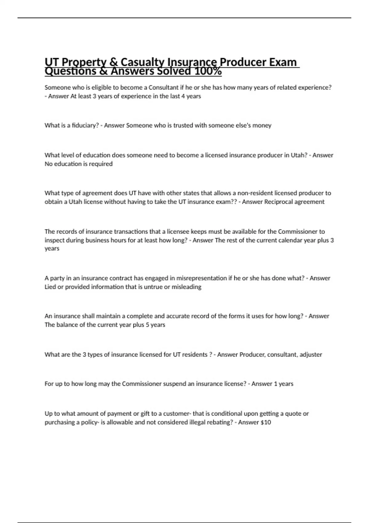 Producer Exam, Utah Property and Casualty, Utah Property and Casualty, Utah Property and Casualty, ADJUSTER EXAM, Producer Exam, Exam Questions, Practice Exam, Law Supplement Part 1, Commercial Auto Exam, Test Question Notes, Utah Property, Casualty Insurance Exam, Casualty Exam, Utah Property and Casualty Exam, Part one, Producer's Practice Exm