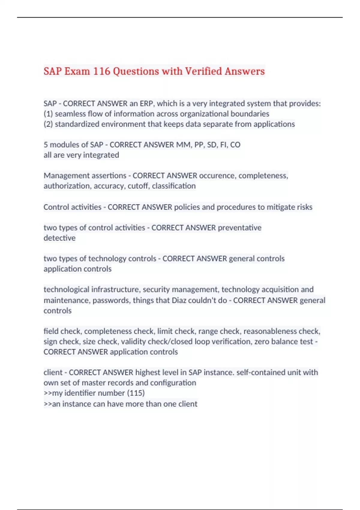SAP Exam ( 24 Sets) Questions with Verified Answers,100% CORRECT