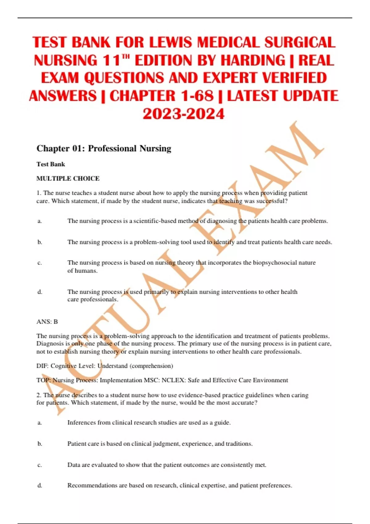 Test Bank Lewis s Medical-Surgical Nursing 11th & 12th Edition Mariann Harding | Complete Set Combined