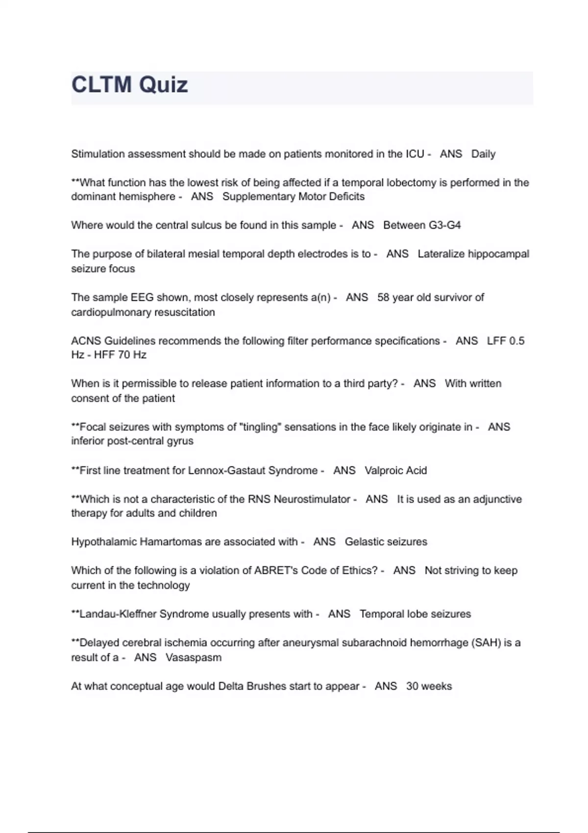 EEG/CLTM EXAM QUESTIONS AND ANSWERS ALL VERIFIED