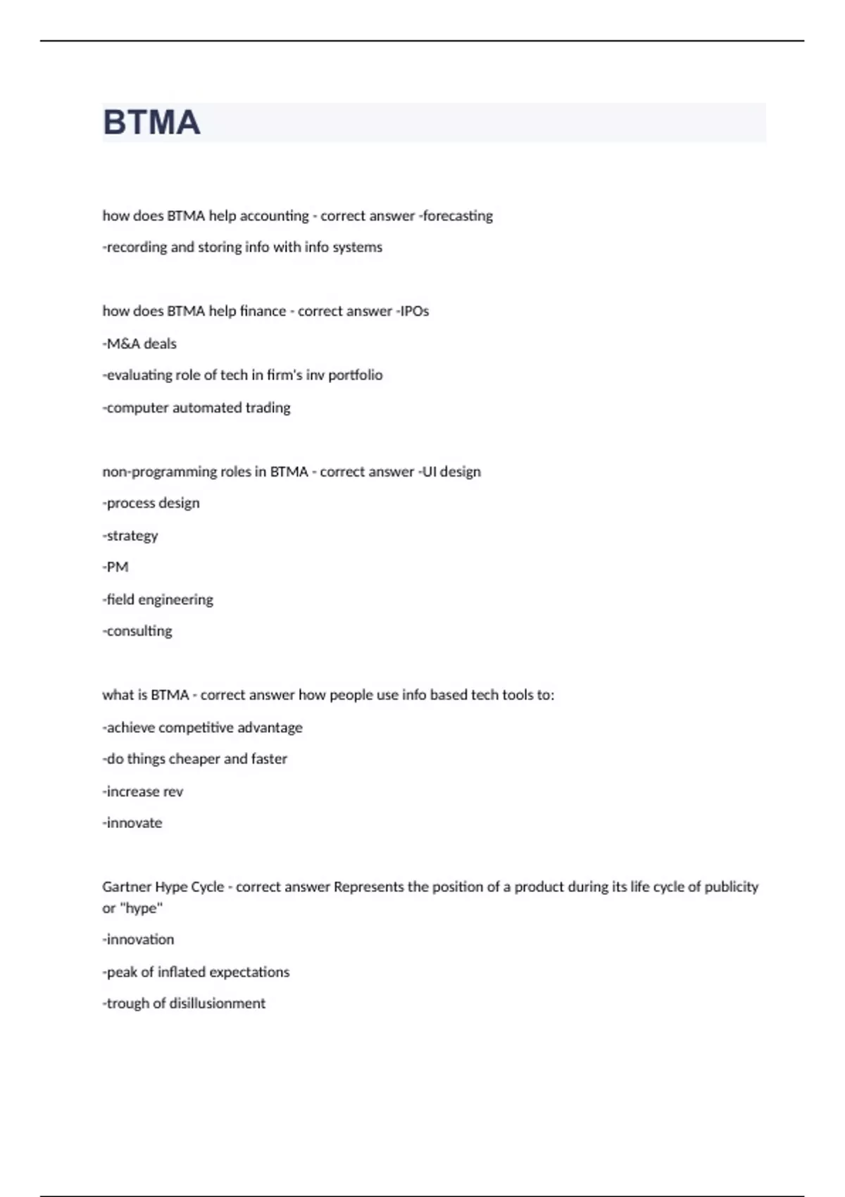 BTMA 317 - Chapter 2 Questions with complete solution 2023/2024 Exam (elaborations) BTMA 317 - Chapter 12 Business Intelligence and Analytics Question and answers 100% correct 2023/2024 Exam (elaborations) BTMA 317 - FINAL EXAM Question and answers rated A+ 2023/2024 Exam (elaborations) BTMA 317 (Second half) Question and answers correctly so