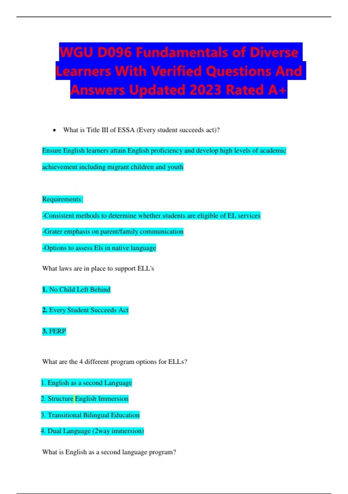 Exam (elaborations) WGU D096 Fundamentals of Diverse Learners With Verified Questions And Answers Updated 2023 Rated A 2 Exam (elaborations) WGU C957 APPLIED ALGEBRA FINAL OBJECTIVE ASSESSMENT WITH COMPLETE SOLUTIONS UPDATED 2023 3 Exam (elaborations)