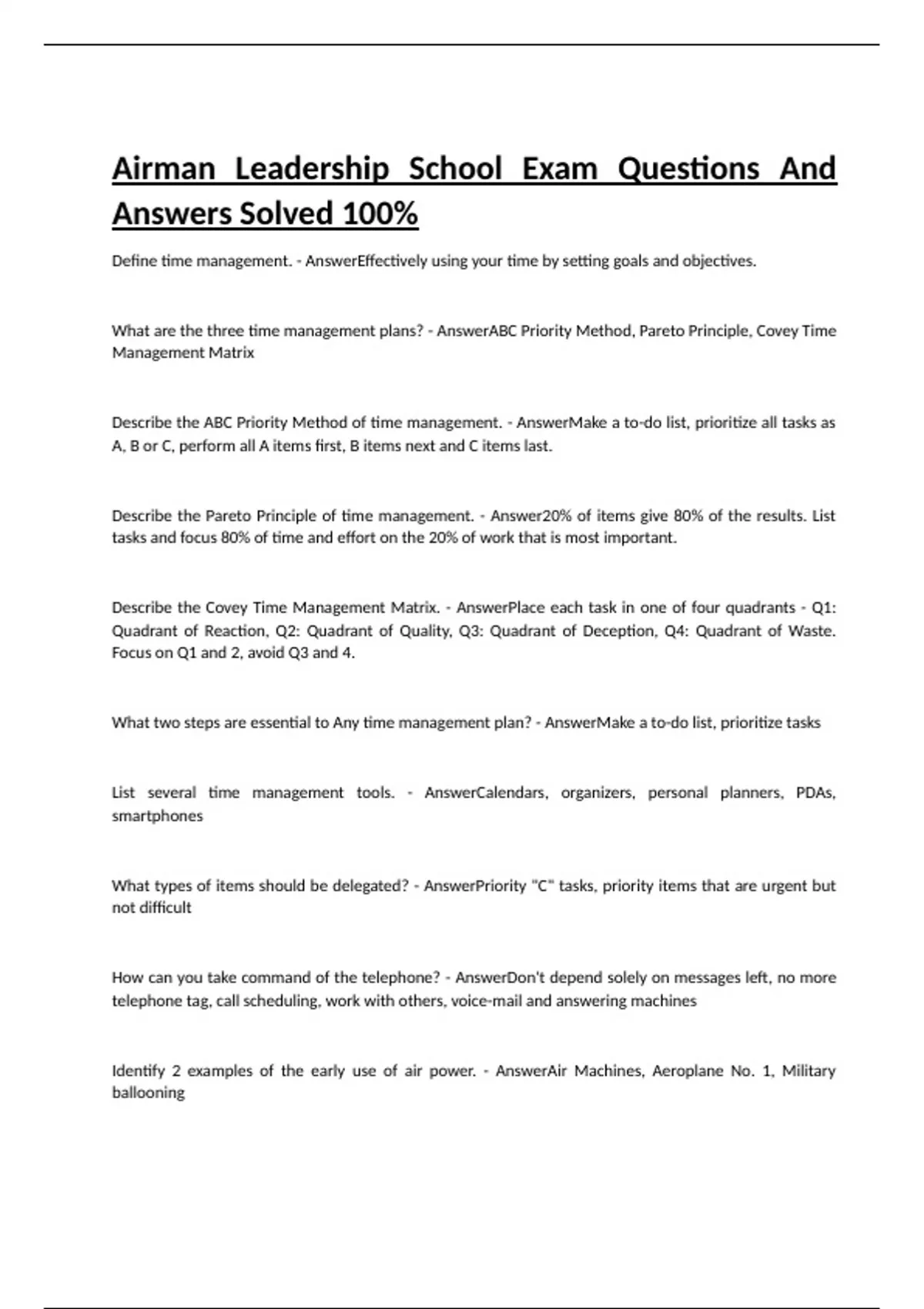Airman Leadership School Exam Questions And Answers Solved 100%Airman Leadership School Exam Questions And Answers Solved 100%