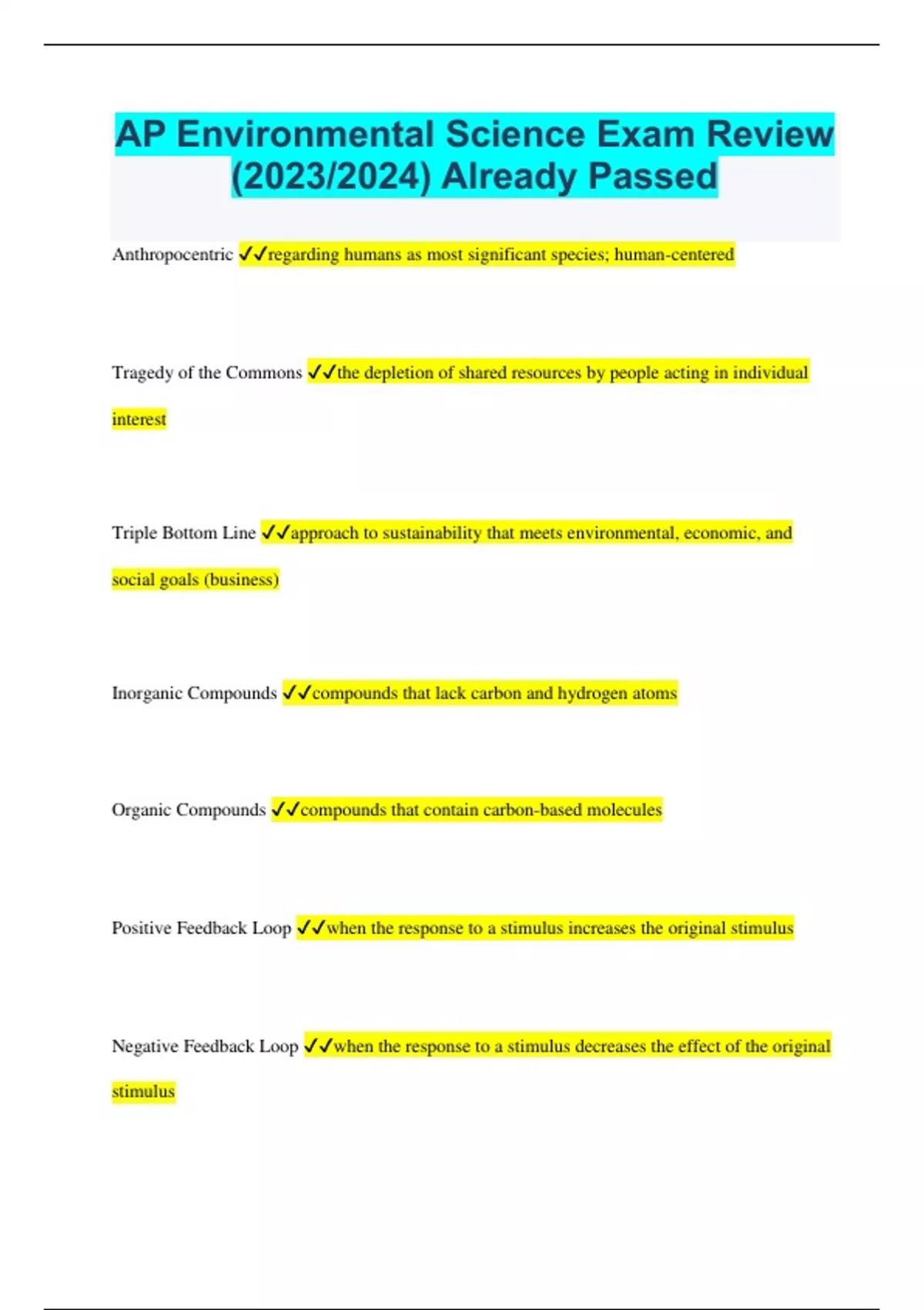 APES Bundled Exams Questions and Answers Multiple Versions (2023/2024) Already Passed