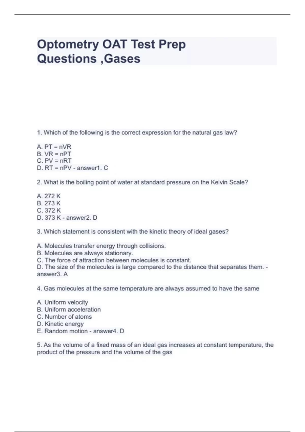 A BUNDLE SET OF OAT PRACTICE EXAMS 2023 QUESTIONS WITH SOLUTIONS