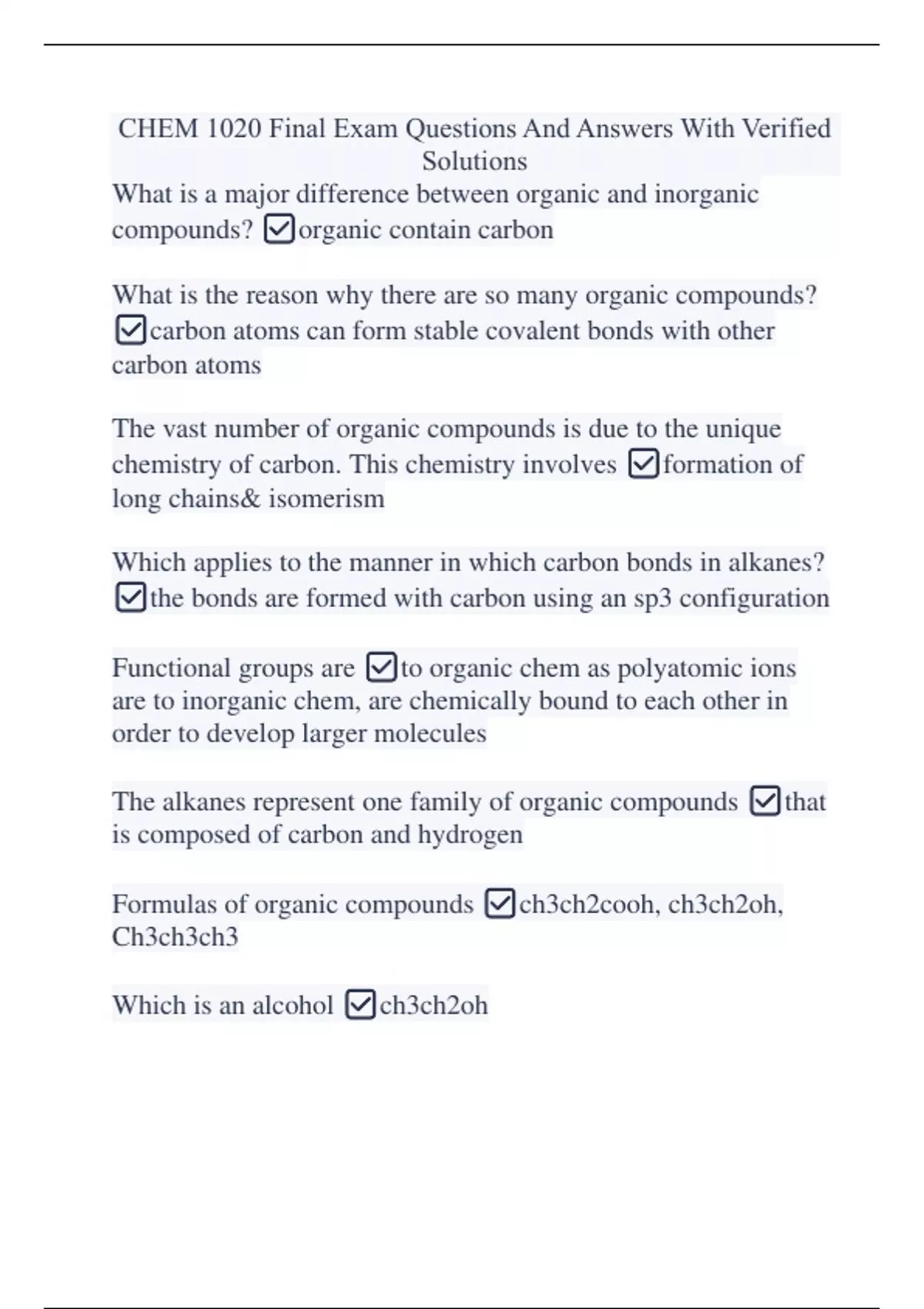 Chem 1020 Lab Package Deal With Full Course Solutions Graded A+