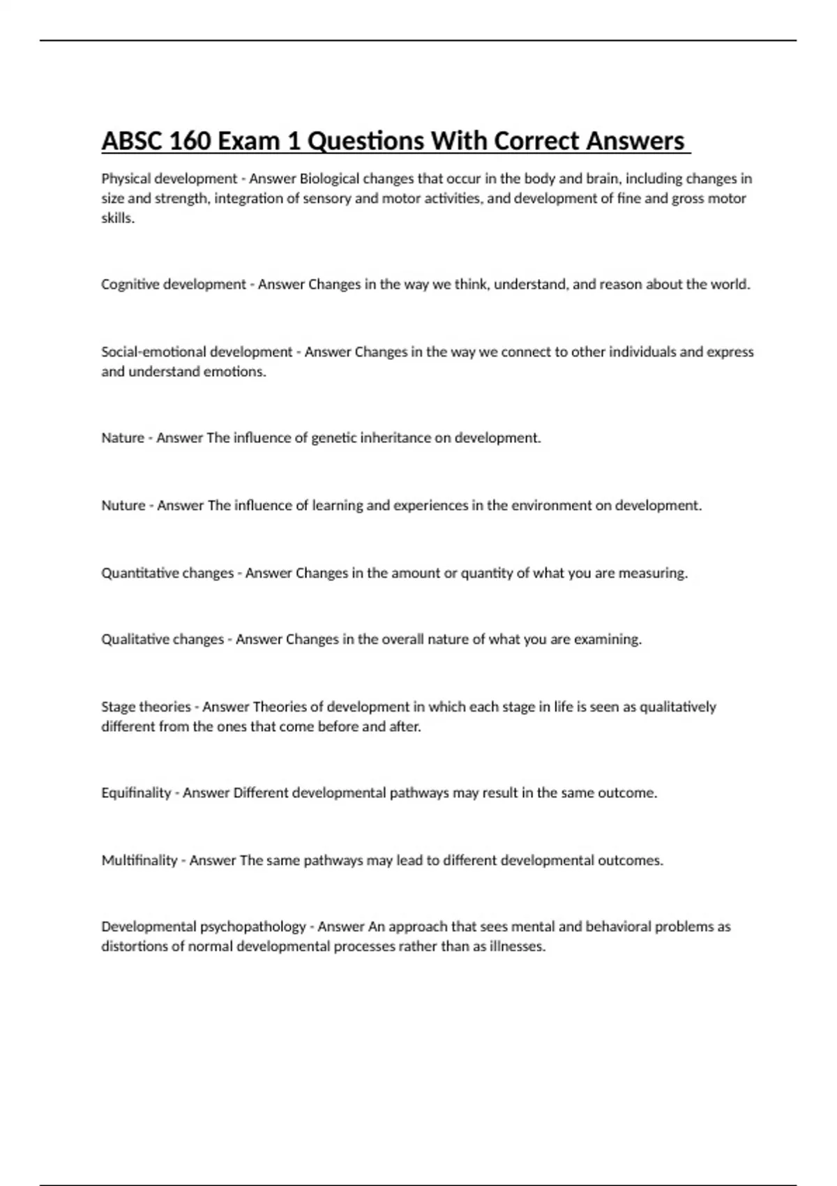 ABSC 160 Exam 1 Questions & Answers Correct 100%
