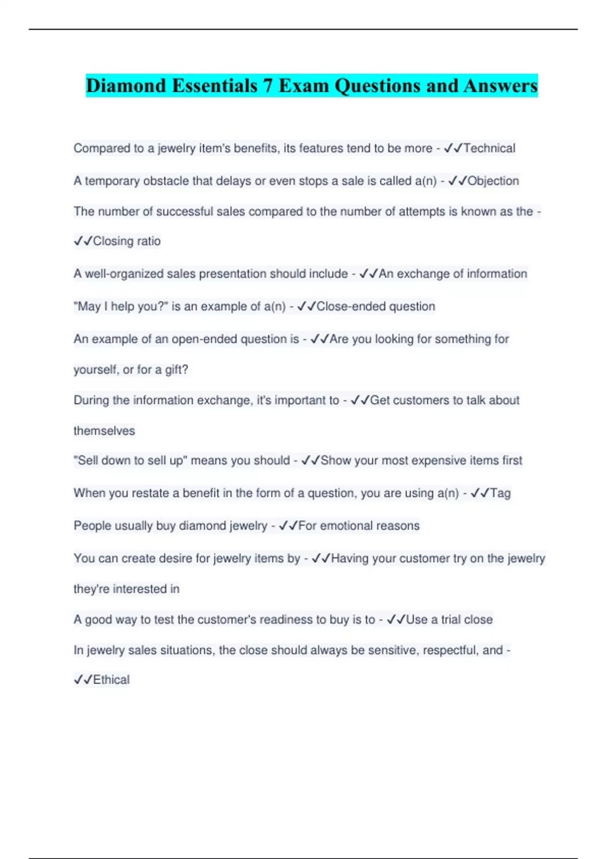 Assignment 7 Diamond Essentials Exam Questions with correct Answers