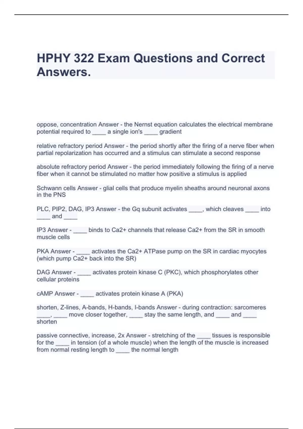 HPHY 212 Exam Correct Questions and Answers.,HPHY 362 Final Exam Blueprint Questions and Answers.,HPHY 322 Physiology Midterm Exam Questions and Answers.,HPHY 325: Exam Questions and Answers: Endocrine and digestive.,HPHY 211 Final Review Questions and Answers.,HPHY 323 Anatomy II Exam 1 Questions and HPHY 111: Sexual Systems – ECorrect Solutions.,
