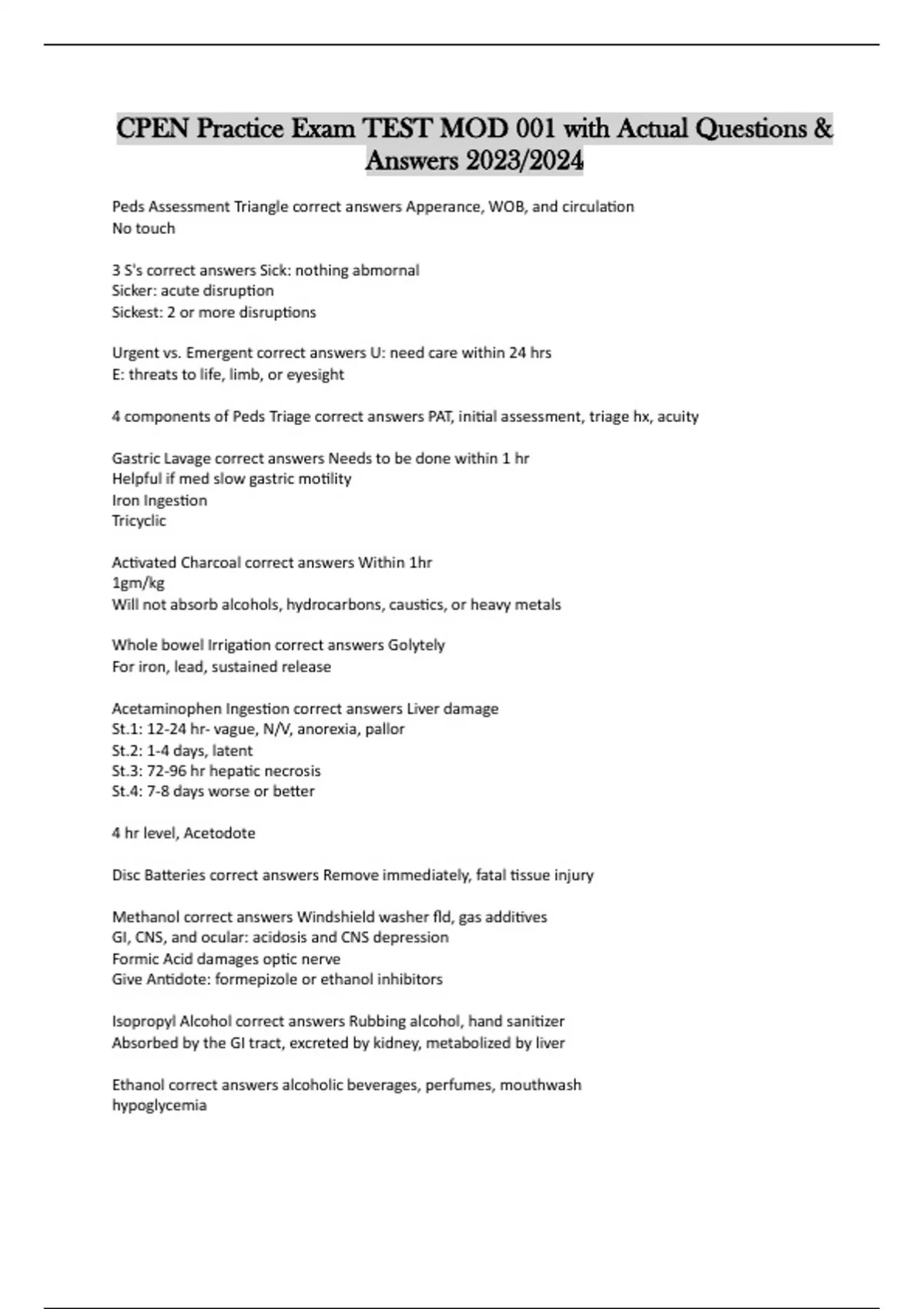 BUNDLED CPEN Practice Exam TESTS with Actual Questions & Answers 2023/2024 GRADED A+