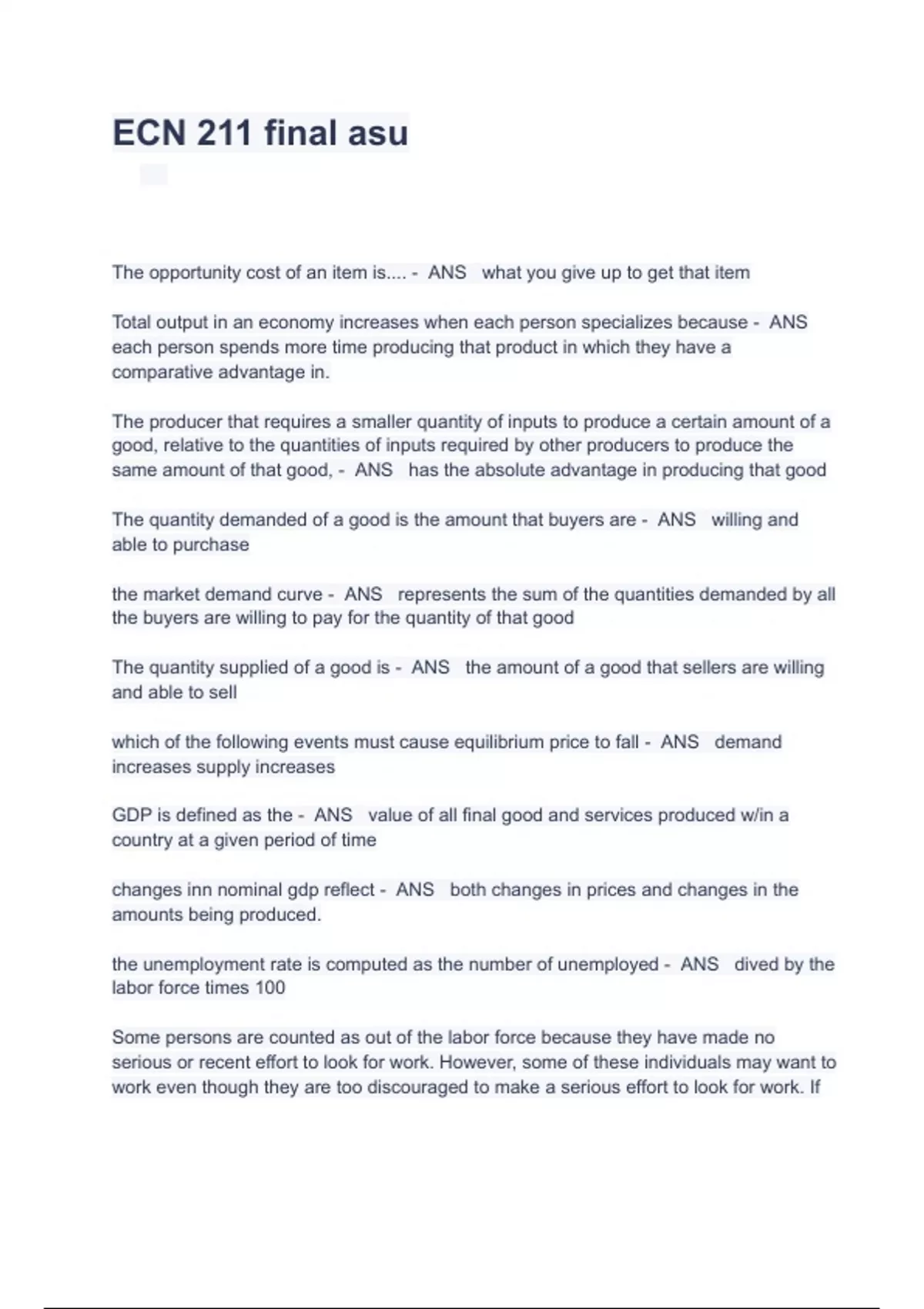 ECN 211 Final ASU Exam Questions With Answers