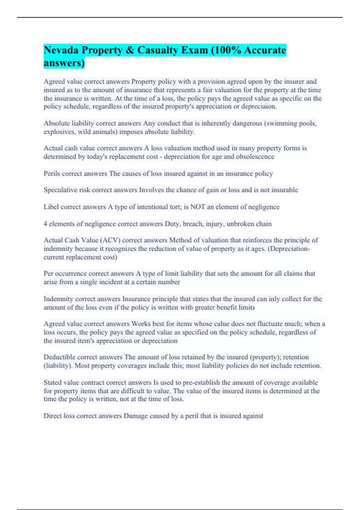 Nevada Property & Casualty Exams (100% Accurate answers)