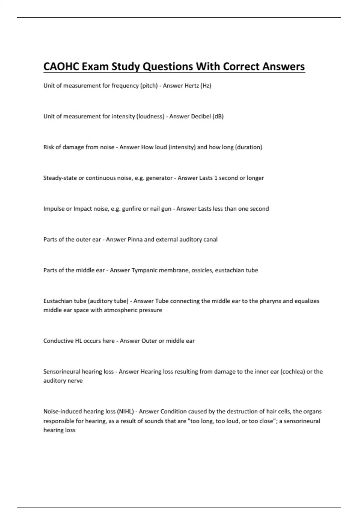 CAOHC Exam Study, CAOHC Test, Study Guide, CAOHC Study Set, CAOHC Exam Prep, CAOHC Chapter 1 Occupational Hearing Conservation Team, CAOHC Exam, Hearing conservation certification Exam, CAOHC Bold Items Exam, CAOHC Test, CAOHC Exam Questions & Answers