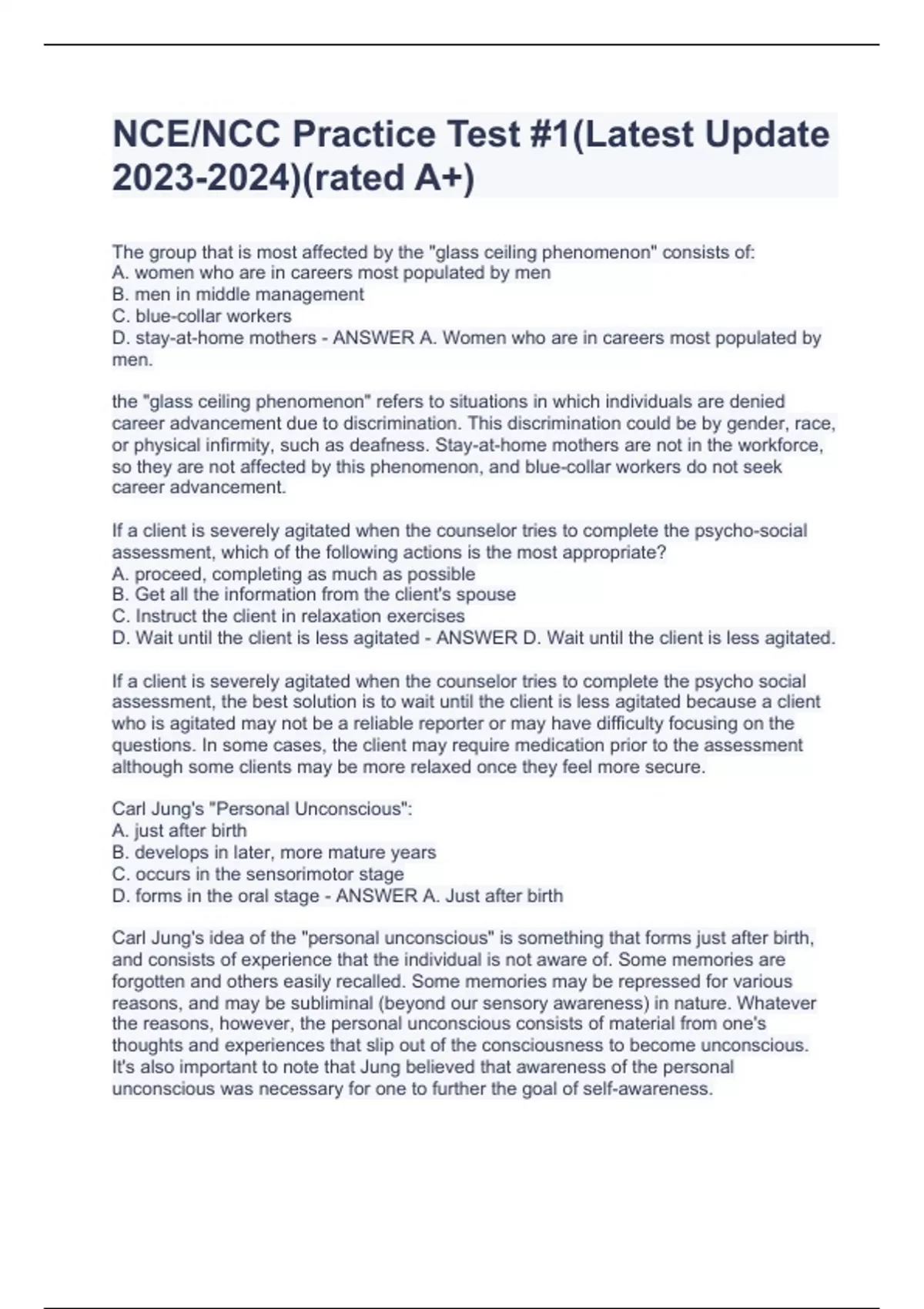 NCE Practice Test Questions & Answers(graded A+)